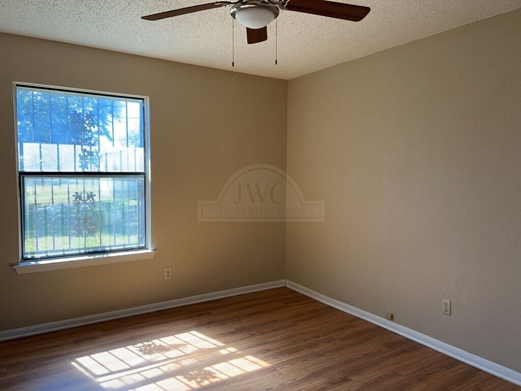 This is a gated 3 bedroom, 2 bathroom house with fenced yard, add on living room perfect for entertaining or a family night in, a 2-car garage, updated floors, ceiling fans, refrigerator, washer & dryer connections and electric range. Pets are welcomed. Approved pets require a paid non-refundable $300 fee per pet. Please contact JWC for more information.