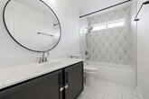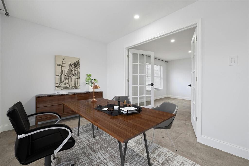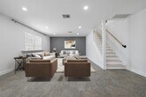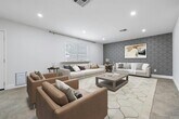 This rental is like no other, it has been amazingly remodeled and updated the home's functionality. The front of the home now has an office with french doors to allow for privacy while working from home. The floors have all been updated with porcelain tile downstairs and laminate upstairs, NO CARPET! The kitchen is open to the living and a large island makes this an excellent eat in kitchen with views to the backyard. Quartz counters throughout, stainless steel appliances, composite granite sink, loft area for second level lounging, gaming, etc., jetted tub in the primary with seats for two, dual vanity, upgraded lighting, wall feature in primary, large walk in closet in primary, finished garage, the list goes on. Don't miss the chance to rent this beauty!