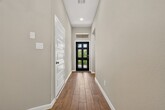 Single-stor plan with 3 bedrooms,2 bathrooms,and a 2-car attached garage. Entry hall passes a utility room and mud room to a large family room open to the dining area. Island kitchen with a corner walk-in pantry. Home office with French-door entry. Secluded primary suite; primary bath includes dual vanities,a linen closet,a large glass-enclosed shower,and a walk-in closet. Secondary bedrooms feature walk-in closets and a covered backyard patio. MLS# 92041250