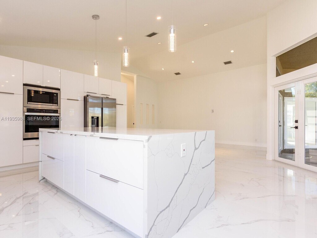 This beautiful waterfront, fully renovated home offers modern comfort in a prime location. This stunning property features 4 bedrooms, 2 1/2 baths, and a 2-car garage. It has a brand new roof. The spacious, high-end gourmet kitchen has exquisite quartz countertops, an oversized kitchen island, stainless steel appliances, & ample cabinet space, making it perfect for cooking and entertaining. It has spectacular porcelain tile throughout the home. Separate Laundry Room. The Master Bedroom has a huge walk-in-closet. The master bathroom has a freestanding tub, a frameless shower door. The other bathrooms were also renovated. All the bathrooms have touchscreen mirrors. Enjoy breathtaking panoramic water views from your backyard oasis- a large, peaceful space ideal for relaxing or entertaining. MLS # A11935988