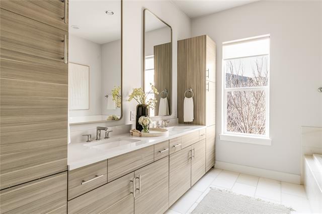 Welcome to this stunning end unit townhome in a prime location of a gated community near Bishop Arts! The first floor features a guest bedroom and attached private yard fitted with turf. The second floor has 14' ceilings, a spacious kitchen with ample storage, high end appliances, and a wine fridge built into the large kitchen island. The dining room and living room have dedicated spaces, but are still part of the open concept. Floor to ceiling sliding glass doors open to give an indoor outdoor feel to the living space. The third floor has a second guest bedroom with an ensuite bath before you reach the massive primary bedroom with two oversized walk-in closets, high ceilings, and fantastic natural light. The spa like primary bath has two vanities, a soaking tub, and more storage. Laundry room and linen closet are also located on the third floor! Optional add-on: Cleaning services (bi-weekly) $360 per mo. A beautiful community pool is just steps away. Come tour today!