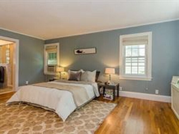 FOR RENT - Elegant Brick Tutor Style Centre entrance Colonial located in desirable Chestnut Hill near Baker School and shops,restaurants and parks. First floor: living room with decorative fireplace + built-in bookcase,3 season sunroom,guest half bath + separate formal dining room. Gourmet chef's eat in kitchen w stainless steel appliances + granite counter tops. Second floor: 3 bedrooms + 2 full baths. Spacious Master bedroom w walk-in closet + en suite spa-like master bath with glass enclosed shower with tile surround and heated floors. Private back yard with a patio + lots of perrenials. Mud room off kitchen. Gas heat is extra. Washer/Dryer in basement. 2 parking spaces in tandem. Tenants responsible for all utilities including water/sewer. NO smoking. Available July 1 MLS# 73490041