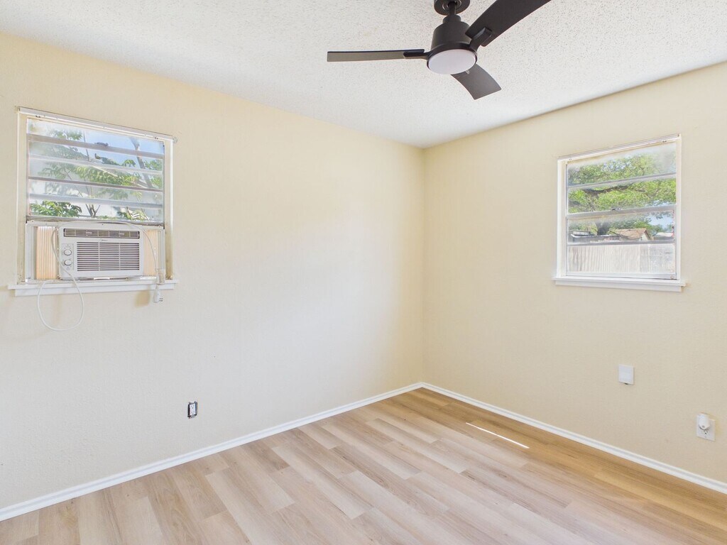 This home in Mesa Verde is ready for new tenant with gas stove and washer. Living room is tiled and bedrooms are wood flooring, ceiling fans and one car attached garage with window units for AC and Wall Heater for Heat. Good size backyard. New paint throughout the home.