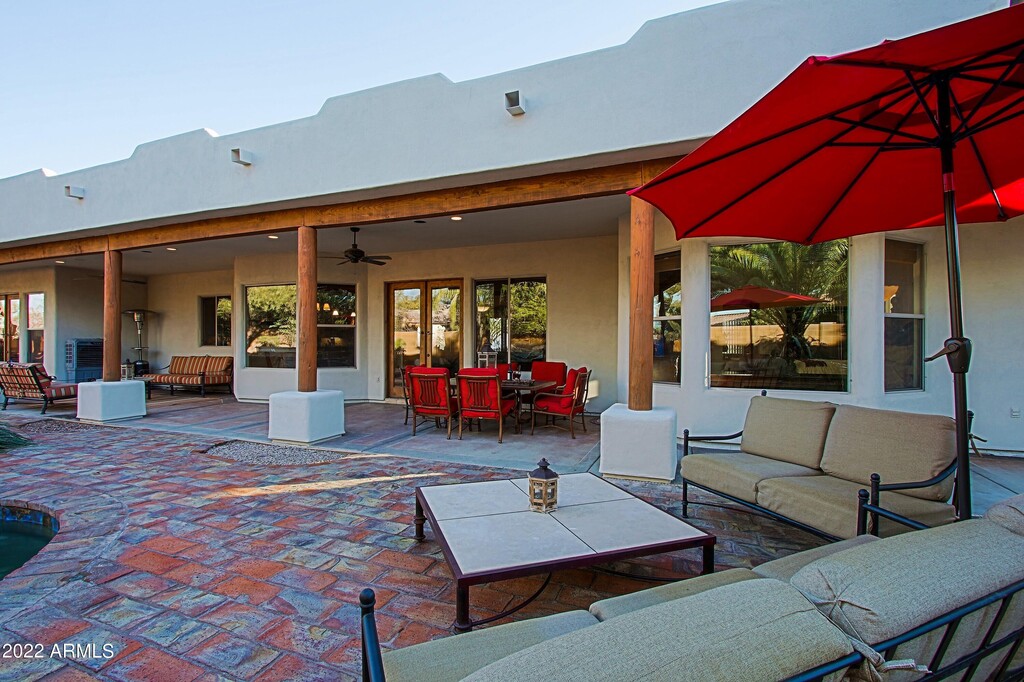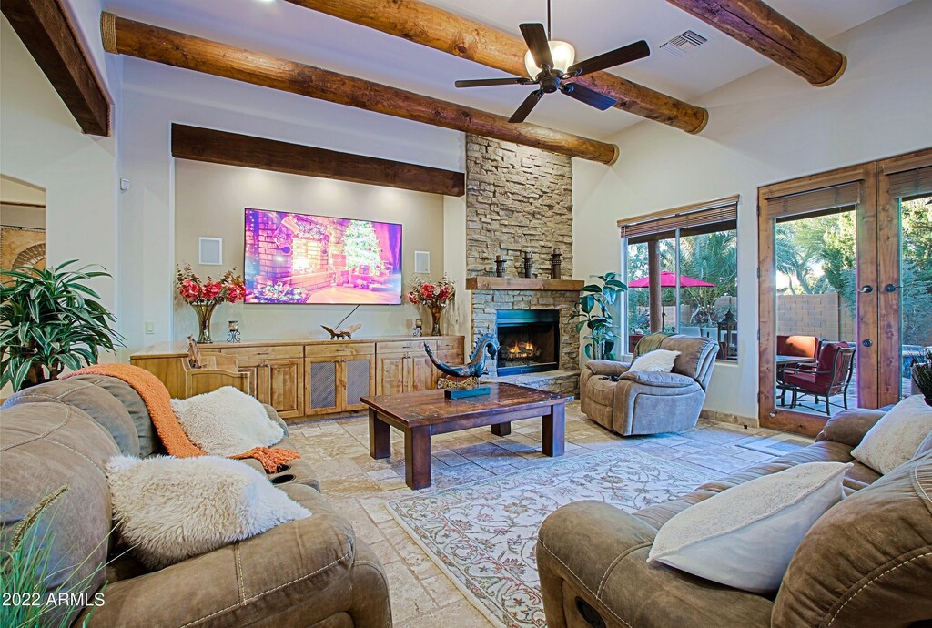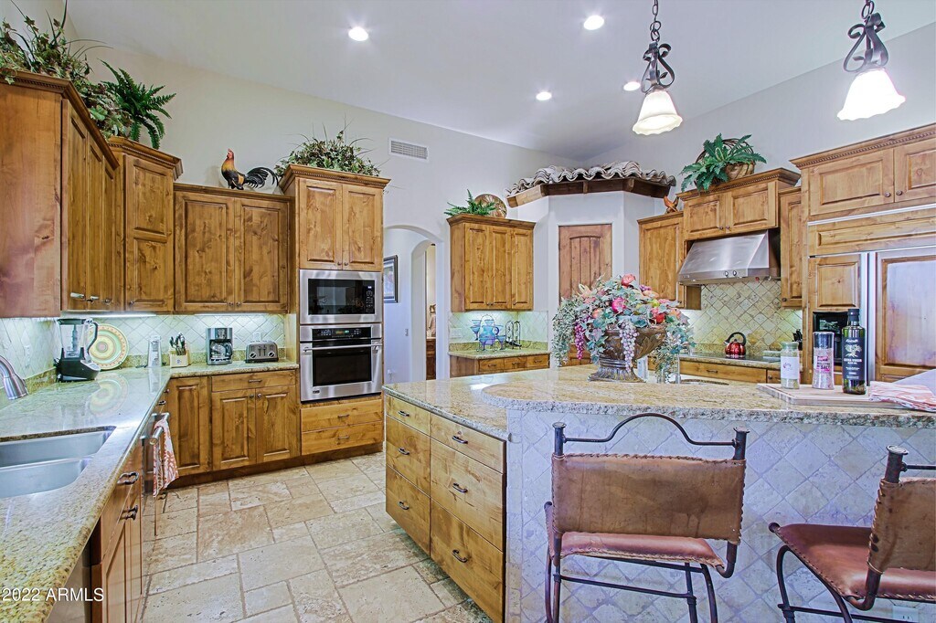 Come enjoy sunny Arizona,Great location,close to Cave Creek,Carefree restaurants,shopping,hiking trails. Stunning custom Territorial home on 1 acre land,no HOA,RVs allowed,paved roads,fully furnished 4 bedroom,2.5 bath,3 car garage vacation rental with heated pool and spa. Backyard features large covered patio perfect for entertaining and Arizona's outdoor living,heated PebbleTec pool with relaxing water features,built-in BBQ and fire pit,luxury patio furniture. Gourmet kitchen includes GE Monogram stainless appliances,wall ovens,built in fridge,granite countertops. Luxury finishes t/o: travertine floors,wood doors... Owners retain exclusive use of RV garage. Oct-April- $8K a month,May-Sep- $6000 a month. Utility charge $500/month added to rent. Pets landlord approval Detached guest casita offers kitchenette,full bath and queen size bed. Fireplaces,Pool and spa heated by propane,Tenant is responsible to pay for propane in addition $500/month utility charge.