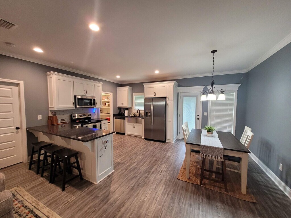 Welcome to 3811 Bettys Place—a beautifully crafted 4-bedroom, 2-bathroom home in Hahira, GA that offers the ideal blend of modern design, comfortable living, and premium finishes. Spanning 1,746 square feet on a 0.15-acre lot, this home features a functional open/split floor plan, a fully fenced backyard, and an oversized covered back porch—perfect for relaxing, entertaining, or enjoying time outdoors. Step through the front door into a bright and spacious interior where thoughtful design meets timeless style. The living room is a showstopper, featuring luxury vinyl plank (LVP) flooring, a soaring vaulted ceiling accented by a striking wood beam, recessed can lighting, and a ceiling fan—all centered around an airy and open layout that makes the space feel even larger. A large foyer welcomes you into the home, offering a gracious entryway for guests. The kitchen is a chef’s dream—equipped with sleek stainless steel appliances including a refrigerator, stove, microwave, and dishwasher. Durable LVP flooring extends into the kitchen for a seamless look, while granite countertops and ample cabinet space ensure style and functionality. A peninsula with bar-top seating offers the perfect casual dining spot, and a window over the sink brings in natural light. Don’t miss the large walk-in pantry, offering generous storage space to keep everything organized and accessible. The kitchen flows openly into the dining area, making mealtime gatherings both easy and enjoyable. Tucked away for privacy, the primary suite is a peaceful retreat with LVP flooring, a tray ceiling with elegant wood detailing, recessed lighting, and a ceiling fan. The en-suite bathroom is built for comfort, featuring a luxurious tiled walk-in shower, a separate garden tub, double vanity with granite countertops, and a large walk-in closet with room to spare. The three additional guest bedrooms are located on the opposite side of the home, each offering soft gray carpeting, ceiling fans, and ample closet space—ideal for family, guests, or home office use. The guest bathroom includes a tile floor, a shower/tub combination, and granite countertops for a polished, cohesive look. Additional highlights include a dedicated laundry room with electric washer and dryer hookups, a two-car garage, and pet-friendly accommodations. The fully fenced backyard ensures privacy and security, while the expansive back porch provides the perfect outdoor living area for grilling, lounging, or hosting friends. Situated in a desirable community in Hahira, this thoughtfully designed home offers comfort, beauty, and convenience all in one. Apply today on our website! Available to move-in: 02/06/2026 Available to view: 01/30/2026 Check out key at our office Mon-Thu:9am-4pm, Fri:9am-3pm w/$20 deposit required, returned when the key is returned & must provide a valid driver's license/i.d. and phone number.