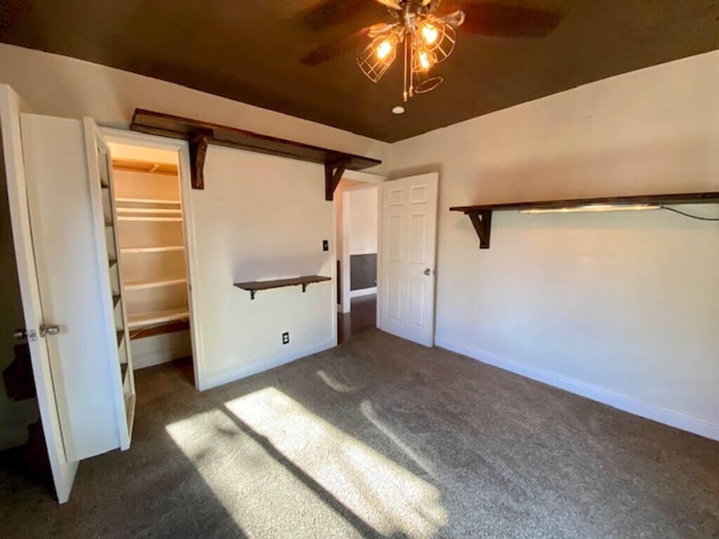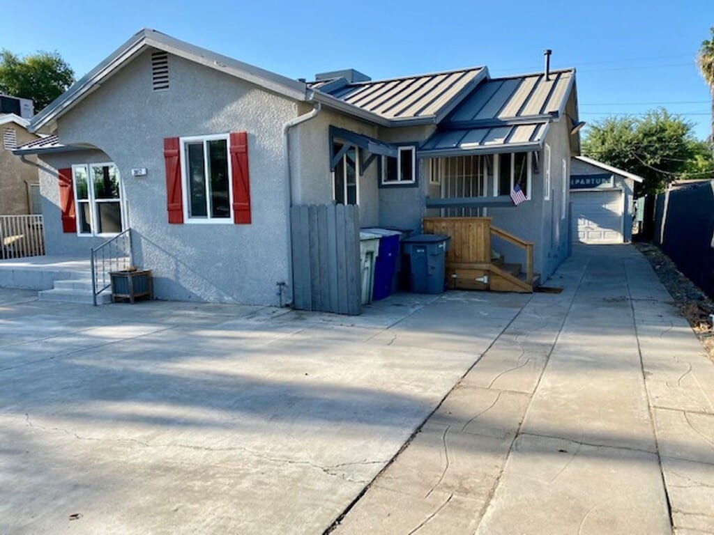 CLICK HERE to schedule a showing: 3D TOUR: Charming, efficient 2 bedroom / 1 bath home. Custom Features, Lots of storage. Less than 5 min. from downtown Fresno, and freeway 41 access. Kitchen has granite counters, garbage disposal, and great storage. Stainless appliances include refrigerator, gas range/oven and built in microwave. Main living space has barn door window covers over dual pane windows, wood beams on the ceiling and custom shelves. Dining room/flex space off of the kitchen. Utility porch room has a built in desk and locking screen door. Both bedrooms have carpet flooring & shelves in the closets. Hall bathroom has a tub/shower and dual vanity. Detached 1 car garage, with washer & dryer provided. Low maintenance gated front and back yards. Front yard is cement, and fenced parking access. Enjoy the backyard with covered deck/patio with lighting and raised garden boxes. Excellent for BBQ, family parties and gardeners. Backyard also has a green house and chicken coop. Yard care is tenant responsibility. Small pet considered with pet deposit and pet rent. No smoking. Cross streets are Butler & Orange. Home built in 1941 Call to schedule a showing or to contact the office. DRE# 01901101. All information is deemed reliable but not guaranteed and is subject to change.