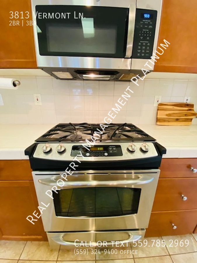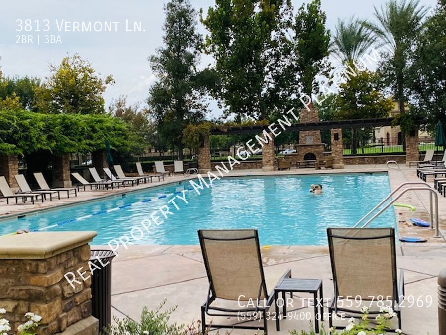CLICK to schedule a showing: Harlan Ranch Community, Front garden courtyard area & fountain. Sparkling olympic size community pool, park & bike trails. Two story, 2 bedroom 2.5 bathroom, 1359 sq. ft. 2 story home. Built in 2007. Kitchen has tile counter tops, stainless appliances; gas range, refrigerator, dishwasher & microwave. Center island, breakfast bar and dinette area, flex space off the kitchen. Great room and half bath downstairs. Backyard patio has 2 sliding doors, and garage access. Patio has covered area & flower garden. Upstairs has 2 bedrooms and 2 bathrooms. Ceiling fans throughout. Main bathroom has dual sinks, and a shower, walk in closet. Second bathroom has a single vanity and tub/shower. Stackable washer & dryer provided. Energy efficient. Tile & laminate flooring downstairs, carpet upstairs. One attached garage. Front yard care is provided. HOA included. Tenant responsible for back yard care. NO pets. No smoking. Renter's insurance is required. Clovis schools. Cross streets are Shepherd & Leonard. Easy access to Hwy 168. Enter on N. Dutch & N. Green Court Ln. Call to schedule a showing or to contact the office. DRE# 01901101. All information is deemed reliable but not guaranteed and is subject to change. Hoa Community Pool No Pets Allowed Renter's Insurance Required