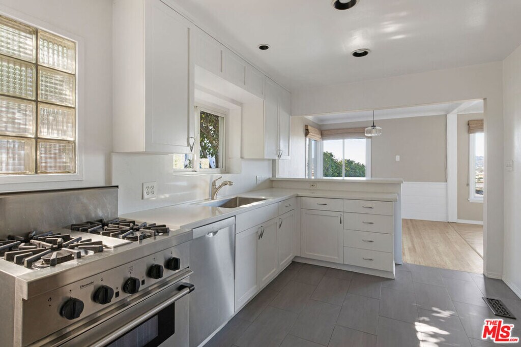 This character-rich home with stunning views is available for lease in prime Los Feliz. Built in 1940, the light-filled residence has period details in abundance including beautiful wood flooring, an angled tray ceiling, and picture windows framing iconic views of the Hollywood Sign and Griffith Park Observatory. In the sunny kitchen find a tile backsplash, farm sink and stainless appliance suite. There are two bedrooms and a cabin-like den with a brick fireplace, perfect as your home office or guest bedroom. Outdoor spaces include a generous front deck where you'll take in nightly sunsets and gorgeous scenery; the private rear yard with a covered patio is an ideal place to relax and entertain. There is central heat+air and an attached two-car garage. This excellent location puts you within the coveted boundary of Franklin Elementary school, just a stone's throw from Shakespeare Bridge. Nearby dining options include Little Dom's, Alcove Cafe and Bakery, Jeni's Ice Creams and more. MLS# 26643857