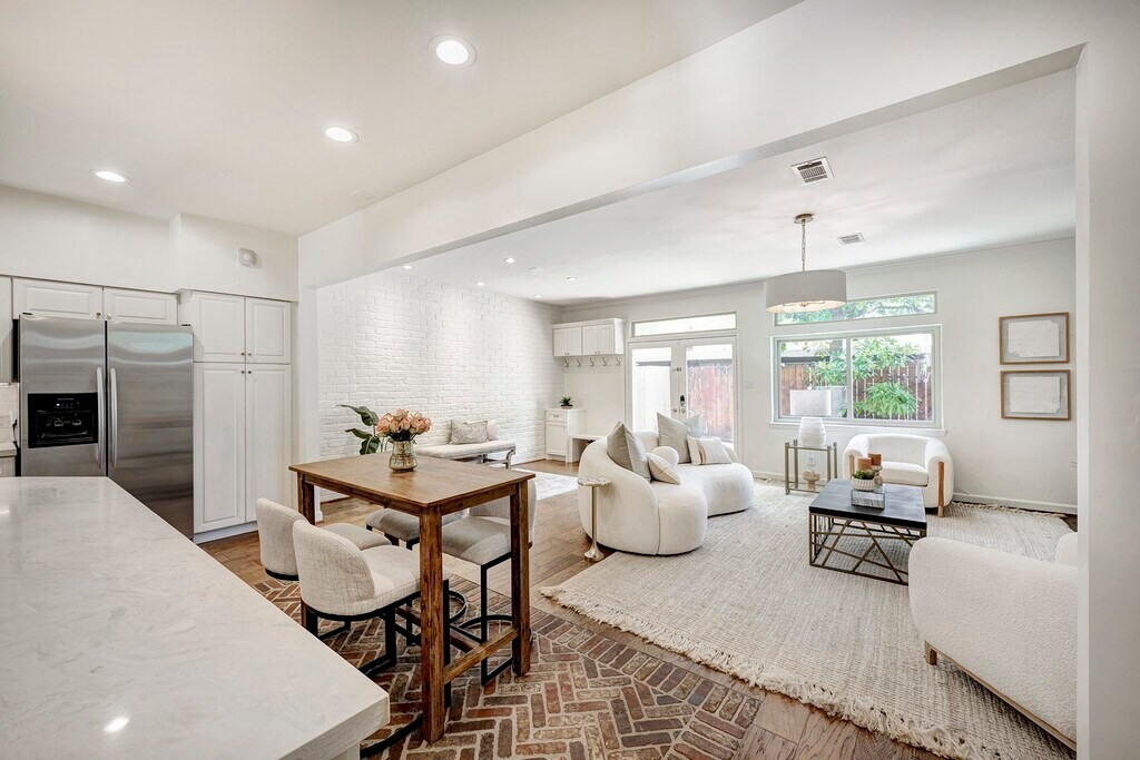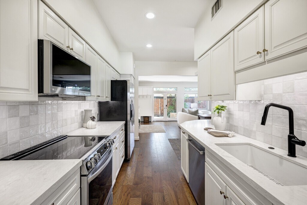 Enjoy serene city living w/ guard station at entrance in this updated 3-bedroom townhome in the gated Upper Kirby community of Madison Place,close to Houston’s top restaurants and shopping. No carpet & upgraded w/ engineered hardwood floors in every room. Remodeled open kitchen features quartz countertops,extended bar seating & fresh appliances. Window seats and built-in storage in the primary br make this inviting space extra functional. Add’l highlights include recessed lighting,skylights in the den,& custom mudroom built-ins. Smart features throughout such as Yale/Google Nest locks,Ring doorbell,smart thermostat,lighting & dimmers. Convert the formal dining into a 4th br and don’t miss the adorable back patio w/ plenty of space for a summer kitchen. AC replaced (2024). Enjoy a resident’s gate to Levy Park! All per owner MLS# 91161290