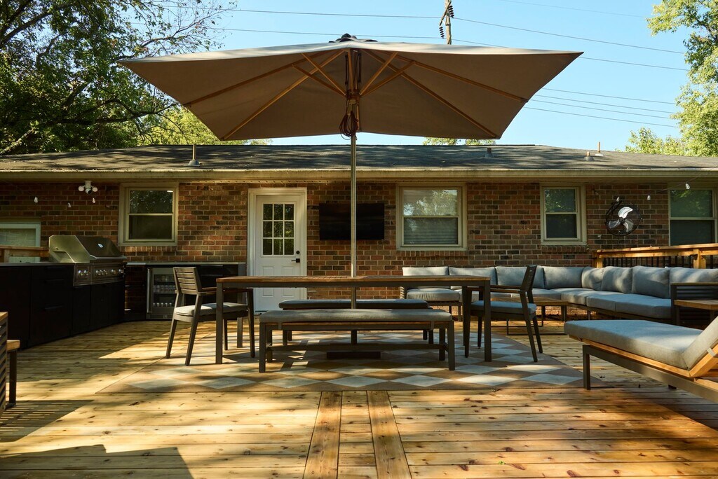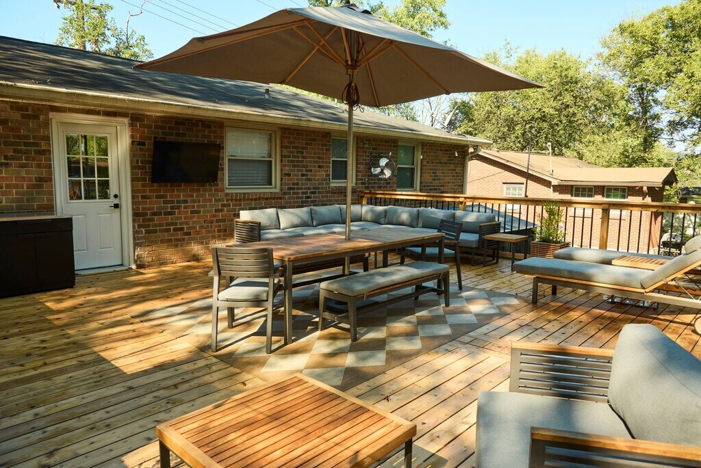 Welcome home to space, comfort, and thoughtful updates in this beautifully maintained 5-bedroom, 2.5-bath property—perfect for growing households, entertaining, or flexible work-from-home living. Enjoy peace of mind with a 7-month-old HVAC system that runs great, plus a 1-year-old refrigerator equipped with a convenient water and ice dispenser. Out back, you’ll fall in love with the expansive 576 sq ft cedar deck, ideal for hosting gatherings or relaxing outdoors. The deck will be re-sanded and freshly stained once furniture is removed, and the outdoor TV will remain for the new tenants. The back deck also features a door with a screen door, offering fresh air flow and easy access to the yard. The fully fenced backyard is a standout feature—perfect for pets, play, and privacy. Two storage sheds will be completely emptied and ready for immediate use, and additional storage is available in the attic.