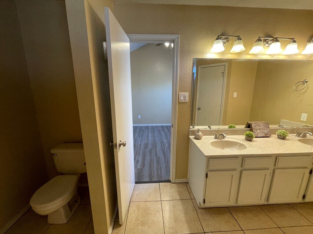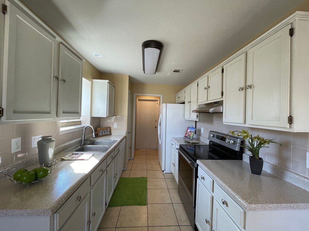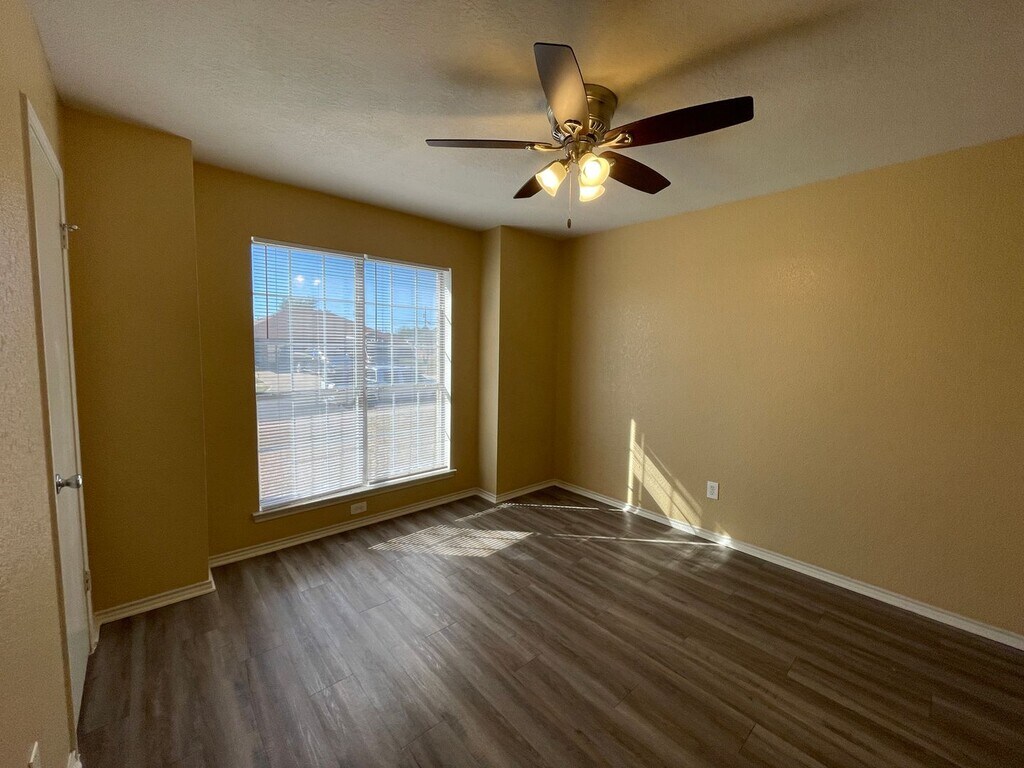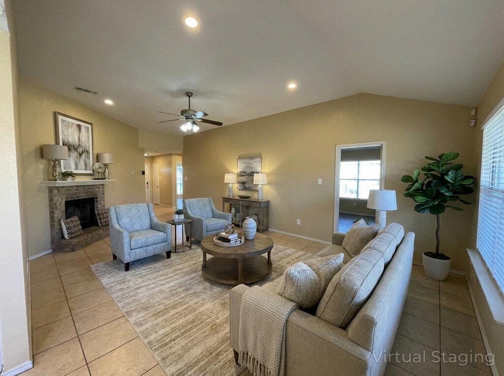 View 360° virtual tour: This 3-bedroom, 2-bath single-family home in Killeen offers a practical layout with ceramic tile and vinyl plank flooring throughout. The living area features a brick fireplace, while the galley-style kitchen includes a tiled backsplash, dishwasher, glass-top stove, side-by-side refrigerator, and a pantry closet. A dedicated dining area with bay windows adds natural light and charm. Ceiling fans are installed throughout the home for added comfort. The primary bedroom includes an ensuite bath with dual vanities, multiple closets, and a tub/shower combination. Additional features include washer and dryer connections, a covered back patio, fenced backyard, and an attached 2-car garage with extra driveway parking. Appointments aren’t required to tour. Contact us or stop by our Killeen office to learn more and see this home in person once it becomes available! We are located at 1020 W Jasper Dr, Killeen, TX 75642. Disclaimer: The furnishings or enhancements shown are AI-generated and intended for inspiration only. They may not reflect the actual scale, condition, or current features of the property.