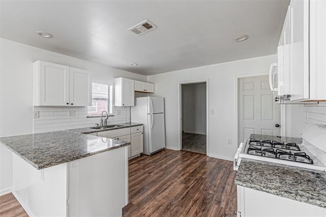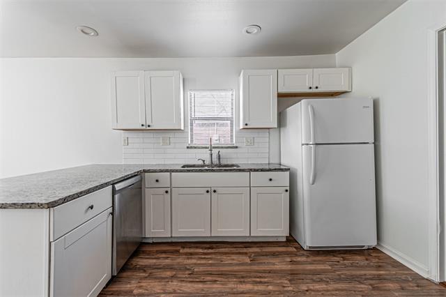 Warm and inviting single family home available for lease in Oak Cliff, conveniently located just minutes from Sylvan Avenue and Trinity Groves. This completely remodeled three bedroom one bath residence offers 936 square feet of thoughtfully updated living space filled with natural light. The home features vinyl plank flooring in the main living areas, tile in the bathroom, and carpeted bedrooms for added comfort. The kitchen is well equipped with a gas range, refrigerator, dishwasher, microwave, and disposal, providing both functionality and efficiency. Ceiling fans throughout the home enhance comfort, and all bedrooms include closets for storage. A full size washer and dryer are included. The outdoor space is a standout feature, offering a gated front yard and two separate backyard areas with ample space for outdoor enjoyment. Central HVAC provides year round comfort. An excellent opportunity for tenants seeking a remodeled home with generous outdoor space in a convenient location.