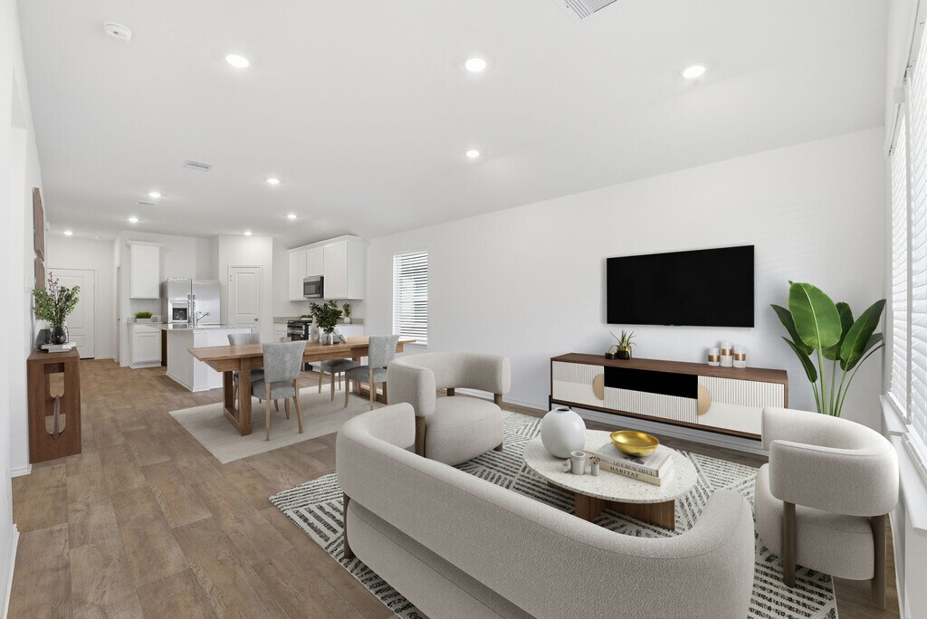 Welcome to this stunning 4-bedroom,2-bath home in the desirable Tamarron community! This modern home offers a bright,open layout with stylish,low-maintenance vinyl floors throughout. The gourmet kitchen features granite countertops,a large eat-in island,42” shaker cabinets,stainless steel appliances,and a walk-in pantry. REFRIGERATOR,WASHER AND DRYER INCLUDED. The private owner’s suite includes high ceilings,plush carpet,dual vanities,a seamless glass shower,and a large walk-in closet. Three additional bedrooms provide flexible space for guests or a home office. Enjoy a covered patio,energy-efficient design,and a smart home system to control lights,locks,and thermostat. This move-in-ready gem combines stylish design with everyday comfort in a growing master-planned community! YARD MAINTENANCE INCLUDED. MLS# 95513815
