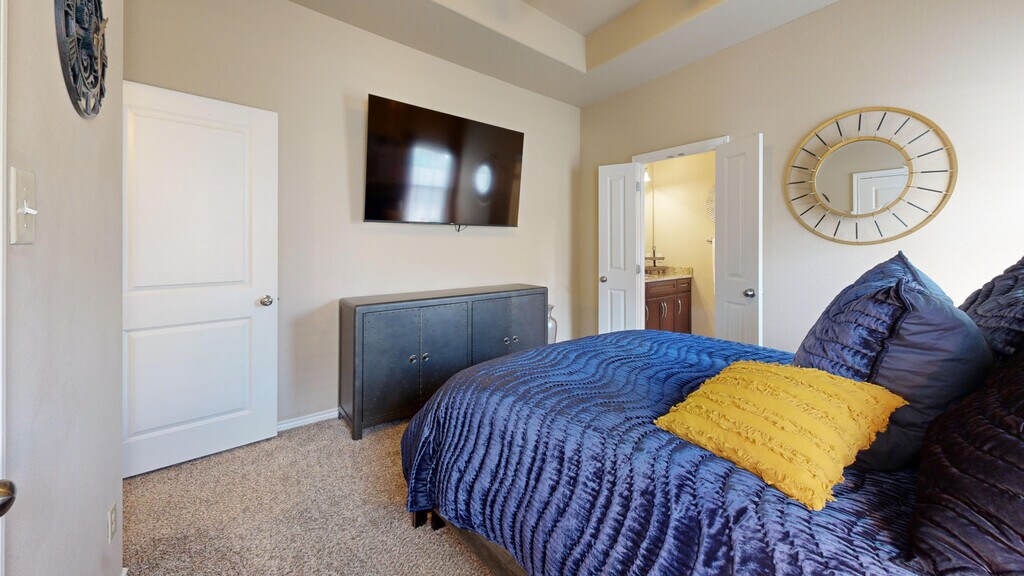 Feel at home in this charming 2-bedroom, 2-bath townhome in the heart of College Station, just minutes from Texas A&M. This is the perfect retreat for couples, small families, or visiting Aggie parents. This cozy and well-appointed townhome features tasteful decor and all the essentials for a stress-free stay. The fully stocked kitchen includes stainless steel appliances, cookware, dishes, a drip coffee maker, and a Keurig. The spacious living room has a large flat-screen TV, and there is an in-unit washer and dryer. This townhome is equipped with a Level 2 EV charger (SAE J1772 connector). Enjoy access to the community pool and the attached garage for easy parking. Nearby highlights include Kyle Field, Century Square, and the Northgate District, all within 10 minutes. H-E-B, Target, and Starbucks are also nearby. Smoking is not allowed in or on the property. If there is any evidence of smoking, $400 will be retained to deodorize the home. People other than those accounted for in the booking agreement may not stay overnight on the property. If unauthorized guests have stayed, a fee of $300 will be retained plus $25 per person. Pets are not allowed. Do not turn the thermostat below 69 during the summer, as the unit could freeze, and the guest will be charged the cost to repair the heating/cooling system. When leaving in the summer season, turn the thermostat up to 80 degrees. When leaving in the winter season, turn the thermostat down to 60 degrees. Parties are prohibited. If feminine products or other products besides toilet paper have been flushed and clogged the plumbing system, the guest will be charged the cost of the plumbing repair. Fires are not allowed on the property, and absolutely no candles may be burned in the house or on the property. No grill is onsite. If the cleaning crew finds that the property has been left excessively dirty, you will be billed for the additional cleaning time at a rate of $50 per hour. If trash is left on the property or outside the front door, there will be a $20 charge. Guests shall not disturb, annoy, endanger, or inconvenience neighbors, nor use the premises for any immoral or unlawful act. Fast Wi-Fi is available for work or streaming. [SI]