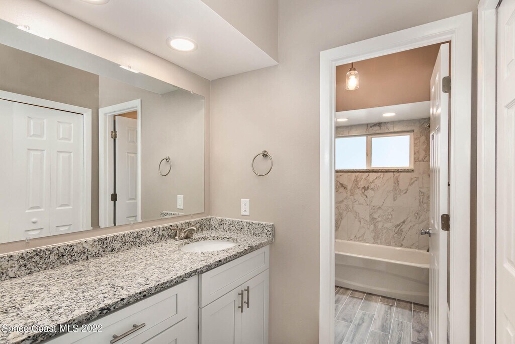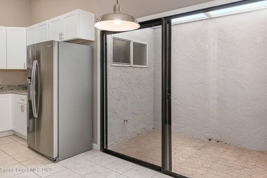 Splendid Suntree location! High ceilings & neutral colors outline tile & wood laminate floors throughout a bright,open floor plan. A charming wet bar in the living area is ideal for entertaining. Stone counters,stainless steel appliances & crisp white cabinetry showcase a modern breakfast bar kitchen. The primary suite presents personal porch access,a stone vanity & a marbled tile tub/shower combination. Two extra bedrooms & the second tub/shower bath are comfortable accommodations for kids/guests. Enjoy two separate outdoor areas: a breezy screened lanai for lounging & a sunny atrium where you can create your own garden or plant-filled paradise! Washer/dryer hookups are conveniently located in the garage. Walk to the sparkling community pool or take a 15 minute drive to the beaches. LAWN CARE INCLUDED! Top local schools are a short commute. Close to shopping,dining,parks,golf courses & I-95. Sorry,no pets.