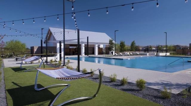 Welcome to this stunning 3-bedroom, 2.5-bathroom home located in the desirable Hymeadow community. Built in 2021, this 2,072 sq. ft. two-story residence offers a perfect blend of modern style, comfort, and convenience. Key Features Open-Concept Living: The main floor features a bright and open floor plan with high ceilings, tile flooring, and a large living area that flows seamlessly into the kitchen. Modern Kitchen: The kitchen is a chef's delight, equipped with stainless steel appliances, a gas cooktop, built-in gas oven, a pantry, and a large center island perfect for meal prep or casual dining. Primary Suite on Main Floor: Enjoy the privacy of a primary bedroom located on the main level, complete with a generous walk-in closet and a private en-suite bathroom. Upstairs Living: The second floor offers two additional bedrooms, a full bathroom, and a versatile second living area that can be used as a media room, home office, or playroom. Outdoor Space: The property features a private, fenced backyard with an automatic sprinkler system, perfect for outdoor activities or relaxing on the covered rear porch. Community Amenities: As a resident of Hymeadow, you'll have access to fantastic amenities, including a dog park, community parks, and common grounds.