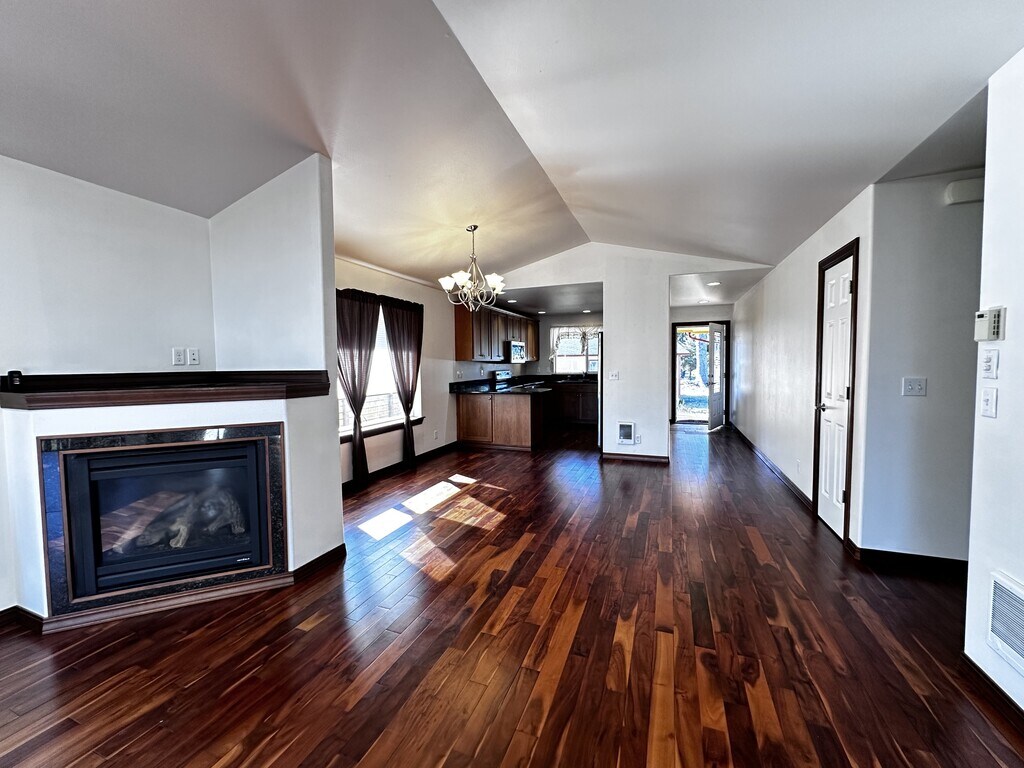 Your Lakefront Lifestyle Awaits! Discover this beautifully updated 3-bedroom, 2-bath ranch-style home with a 2-car garage, perfectly positioned on the lake. Enjoy gleaming hardwood floors throughout (no carpet!), stone countertops, stainless steel appliances, and a cozy propane fireplace for year-round comfort. The primary suite offers a private retreat with a walk-in closet, ensuite bath, and sliding doors leading to the deck overlooking the lake. Step outside to your private dock—perfect for launching a kayak or simply relaxing by the water. Wake up to breathtaking sunrises and savor peaceful mornings on the deck. Don't miss out—call to schedule your private tour today!
