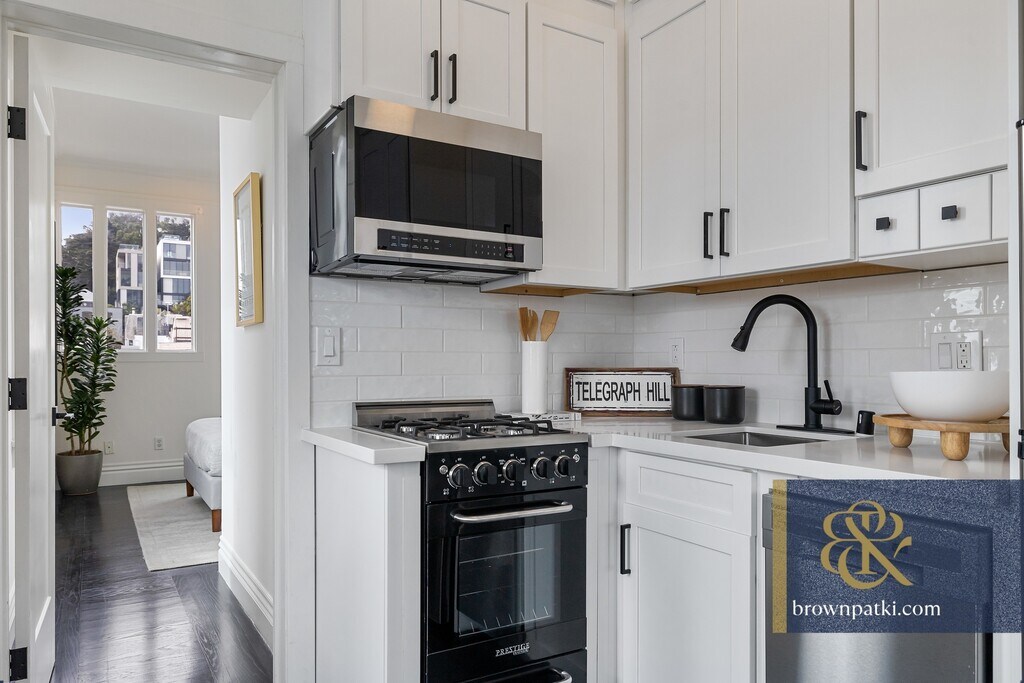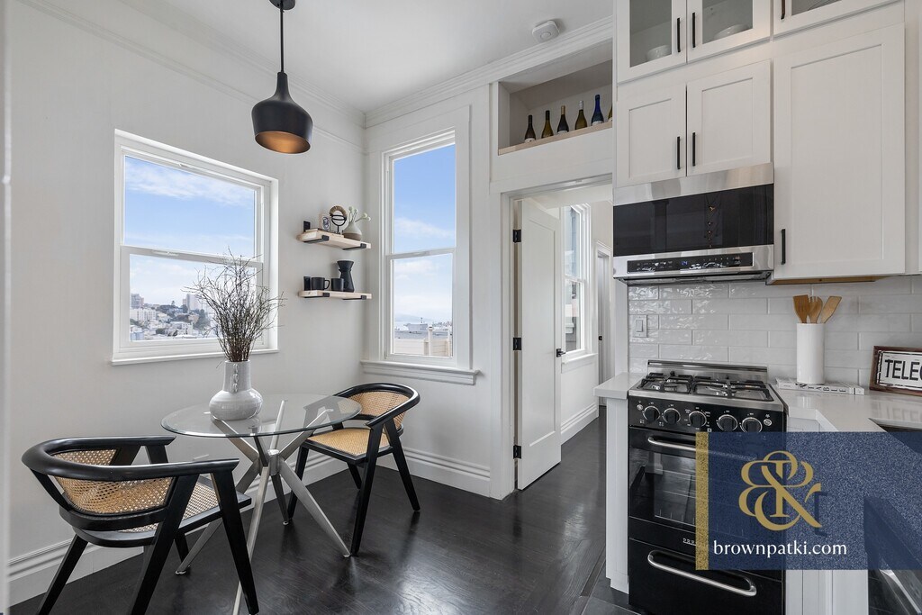 Top Flr., Remodeled 1bd – Views! | Brown &; Patki Inc.PLEASE TEXT US TO SCHEDULE A VIEWING OR FOR ANY QUESTIONS: Four-One-Five, 236, 2660Watch the video walkthrough: this charming 1bd in Telegraph Hill your next home. Features include:- Light-filled open floor plan living, dining and kitchen. Wood floors throughout. - Top floor unit with stunning views out to the City and Coit Tower. Modern touches including track lighting and an electric fireplace. - Contemporary design kitchen with white cabinets, white backsplash tile and stainless steel appliances. - Bedroom with attached bath. Bath has been renovated with designer fixtures and finishes.- Enjoy the outdoors and a view to Coit Tower from the deck off the bedroom. - Washer and dryer in-unit. - A shared roof deck offers a shared BBQ along with panoramic views.- Street parking only. With a perfect WalkScore of 100, you won’t need a car! Enjoy all the shopping and dining options in nearby North Beach. - Transit options include multiple MUNI lines. KEY TERMS:- Security Deposit = 1.5 x Rent - Small dog considered - Available December 15, 2025 - Min. 1 yr lease term - Water and garbage included - Unit will be delivered unfurnished. Furniture shown is for staging purposes only. - Renters Insurance Required - No Broker Fee - No guarantee, warranty or representation of any kind is made regarding the completeness or accuracy of descriptions or measurements (including square footage measurements and property condition), such should be independently verified, and Brown &; Patki Inc. expressly disclaims any liability in connection therewith. - This unit is a rental unit subject to the San Francisco Rent Ordinance, which limits evictions without just cause, and which states that any waiver by a tenant of their rights under the Rent Ordinance is void as contrary to public policy. PLEASE TEXT US TO SCHEDULE A VIEWING OR FOR ANY QUESTIONS: Four-One-Five, 236, 2660OFFERED BY: Brown &; Patki Inc. (DRE #02240568)Brian Brown (DRE #01461194) | Mahesh Patki (DRE#01948053) | Marika Neemia (DRE#01785680)View our other available rentals at: at : 382 Green Street #5