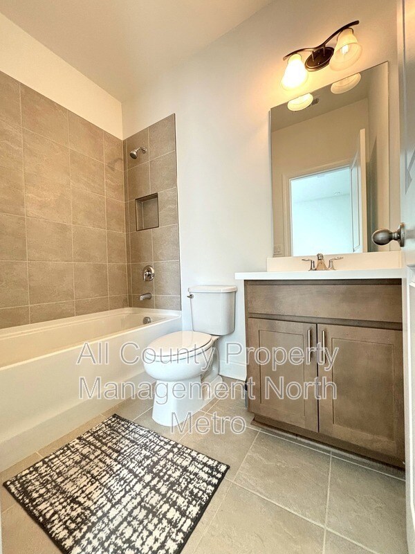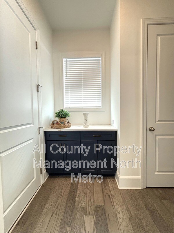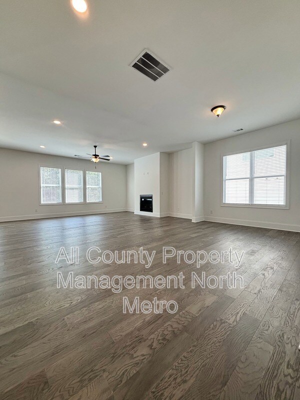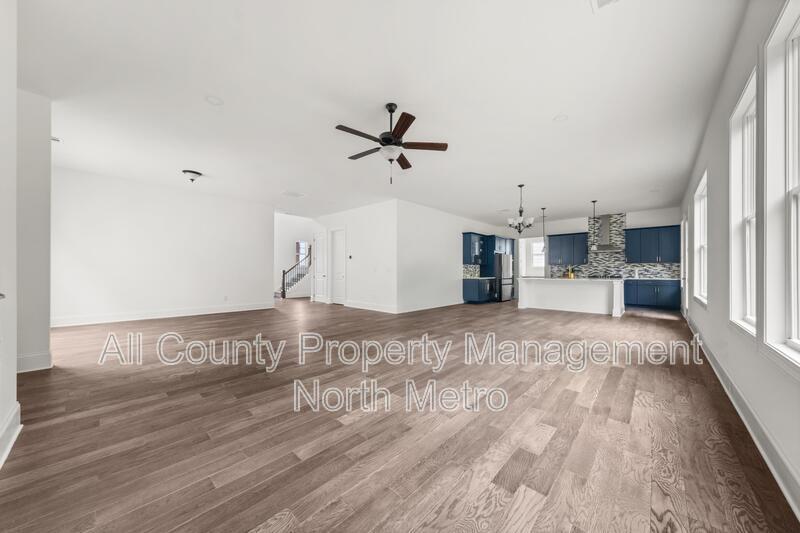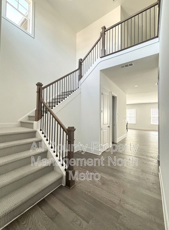 This north-facing single-family residence is located at in the Easley subdivision of Woodstock, Georgia. The home provides ample living space and features five bedrooms and four full bathrooms. The interior layout includes a two-story entrance foyer, a formal dining room with a butler's pantry, and a great room. The main level contains one bedroom and a full bathroom, while the upper level holds four bedrooms, three bathrooms, a loft, and a dedicated laundry room. The property also includes an unfinished basement and a two-car garage. The kitchen is equipped with a quartz island, a walk-in pantry, and soft-close cabinetry. Appliances included are a refrigerator, dishwasher, oven, vent hood, and microwave. A washer and dryer are provided as a convenience to the tenant. The home features hardwood flooring on the main level, and high-level carpeting in the bedrooms. Exterior features include a covered front porch with cedar columns and a covered rear patio. Community amenities available to residents include a swimming pool, clubhouse, dog park, walking trails, and game courts. The property is located in a desirable Cherokee County School district. Up to two pets, including dogs and cats under 75 pounds, are permitted. The tenant is responsible for all utility costs and all regular lawn maintenance. Locally & professionally managed by All County Property Management North Metro, which offers a streamlined leasing process with self-guided tours available.