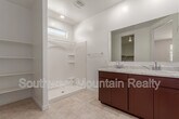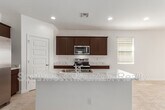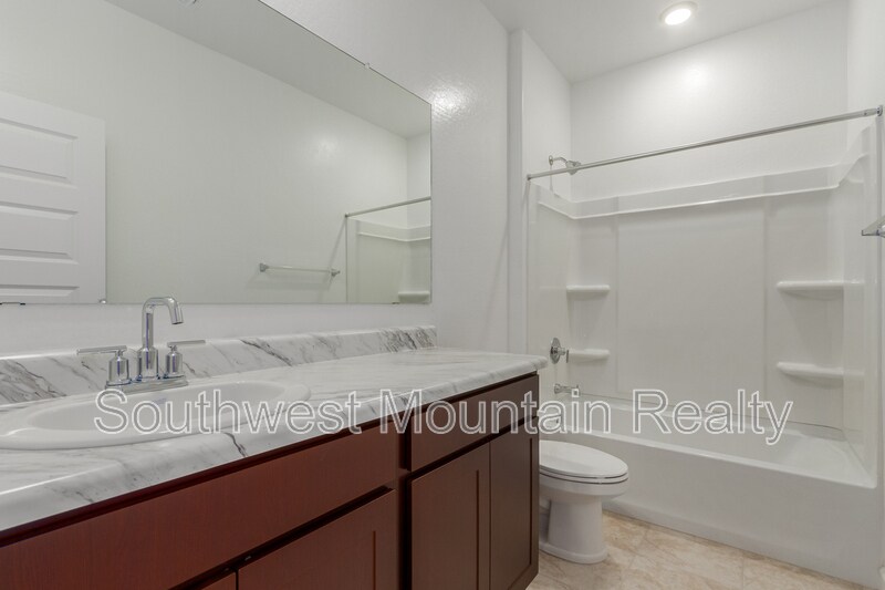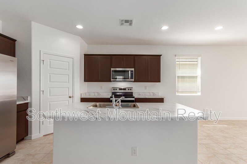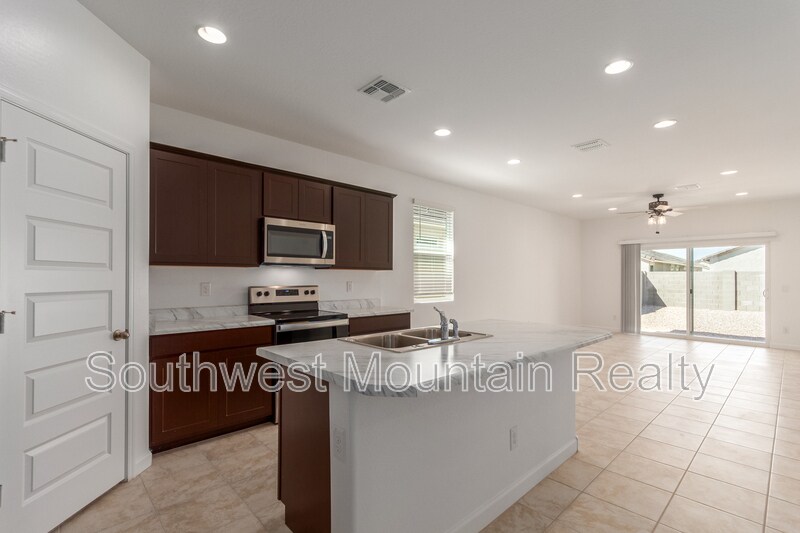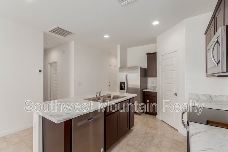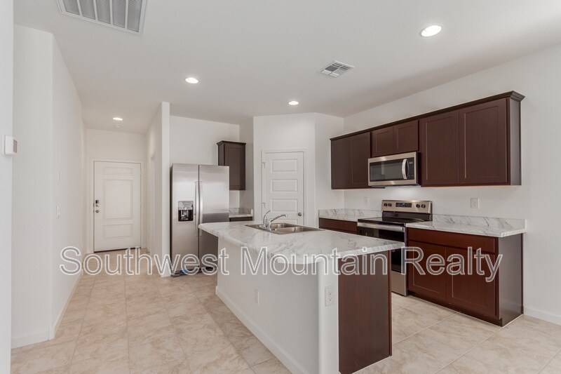New construction (less than 1 year old), 4 bedroom, 2 bath home in Maricopa! Gorgeous upgraded kitchen with premium cabinets and tiled backsplash and upgraded Quartz counters! Tile in all of the right places, large carpeted bedrooms!