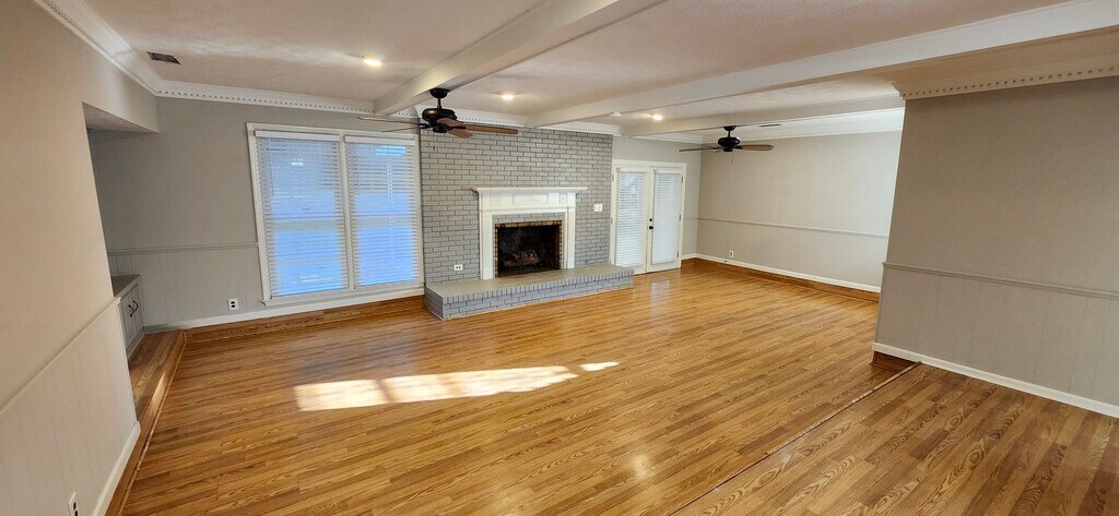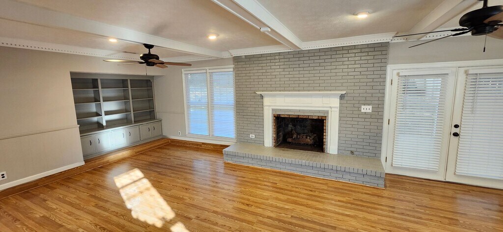 3 bedrooms 2 full baths 1995 sqft Family room with fireplace Built in bookshelves Separate dining room Kitchen has stainless appliances Pantry Breakfast area Laundry room Hardwood throughout Tile in the baths Covered back patio Fenced backyard Attached 1 car garage