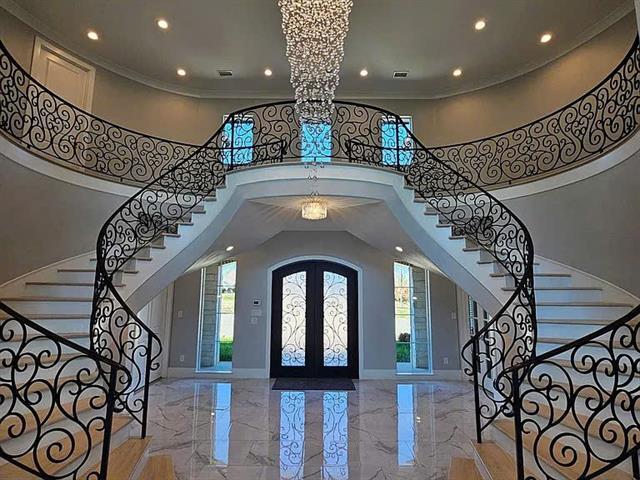 This stunning 2020-built modern estate, nestled on the border of Prosper and Celina near the Dallas North Tollway, offers a lifestyle of unparalleled luxury and convenience. As you pass through your private, remotely powered iron gate and pull up the large circle driveway, you are greeted by a grand entrance featuring 20-foot ceilings, a dual staircase, and a magnificent 10-foot teardrop chandelier. The open-concept first floor is designed for both entertaining and comfort, boasting a gourmet kitchen with a massive island, a built-in espresso and cappuccino maker, a separate dining area, a private home office, and a master guest suite with a walk-in closet. Upstairs, the primary master suite serves as a true retreat with a sprawling bath, a huge walk-in closet, and a private walk-out balcony. Leisure is effortless with a large second-floor game room and a climate-controlled sunroom featuring sliding glass panels that open to a scenic backyard pond and a private fishing deck. The home is as functional as it is beautiful, featuring a total of four garage spaces—including a three-car insulated, climate-controlled garage—and advanced technology like a 6-zone Sonos surround system and a smart security system. For those looking for a turnkey experience, the property is available with semi-furnished options including a pool table, patio furniture, and TVs. The owner provides premium peace of mind by covering all weekly landscaping, mowing, and fertilization services. While the renter is responsible for utilities and general maintenance, the landlord is committed to assisting with service providers and sharing costs for certain repairs. Please note this is a smoke-free and cat-free environment, though small dogs are welcome with an additional $500 security deposit each.