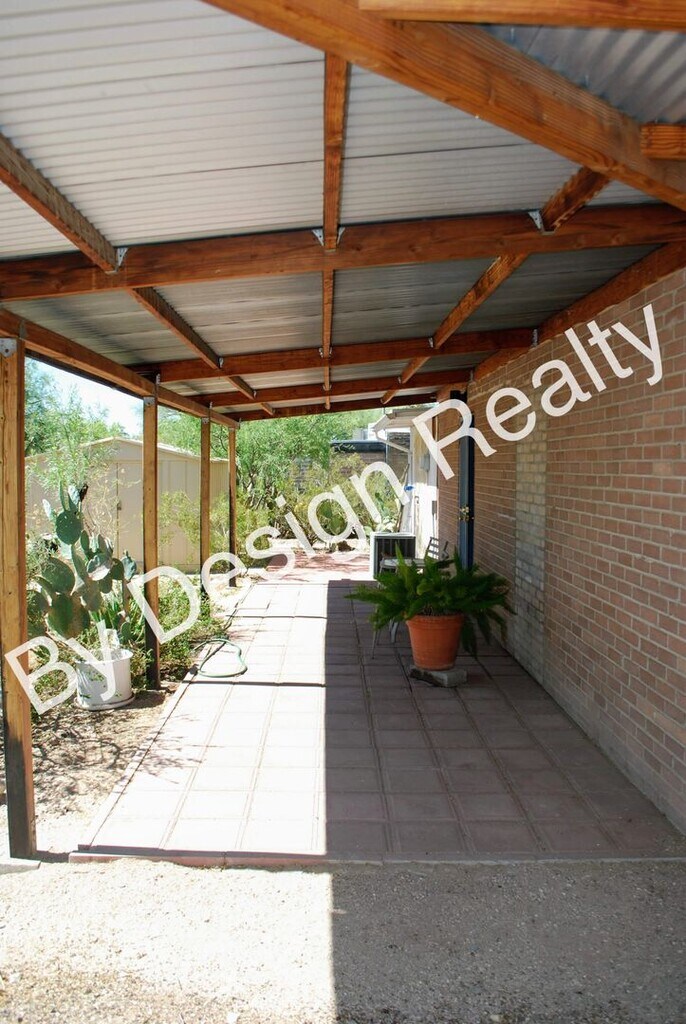 Catalina Foothills 1 Bed 1 Bath Stand Alone Home. 740 SQ FT. Tucked into the Catalina Foothills just north of River Rd and walking distance to the Rillito River and the Tucson Jewish Community Center. The home sits on .25 Acres of UN-FENCED land and is surrounded by native landscape. For that reason the owner will ONLY consider tenants with One Small Dog under 25 lbs and NO CATS. Remodeled Eat-in Kitchen with ceiling-height cabinets, corian counters, and updated fixtures. The living area has french door entry and both front and back doors open to the desert but also have wrought iron to allow for airflow through the home. Tile floors throughout. The bedroom has plenty of closet and shelf space. The bathroom has been remodeled with a walk-in shower, extra wide vanity, and updated fixtures. Full-Length East facing patio has views of the surrounding desert and mountains. Central A/C & Heat, full-size washer/dryer, and storage shed for use by the tenant. 1 Carport. This home is offered as NON-SMOKING. Pet Policy: One Small Dog under 25 Lbs - NO CATS.