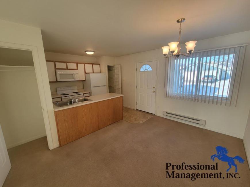 APS94951349 - *Pictures are of another unit. New ones coming soon! Single Level, 1 Bedroom 1 Bath patio apartment is now available! Dishwasher, garbage disposal, microwave, wall AC, patio & single car garage. Shared coin-op laundry. No lawn care or snow removal required! Tenant pays electric and $55 flat fee for water. Sorry, this is a no pet property. Doesn't qualify for section 8 and no cosigners WA2203. Call us today at .
