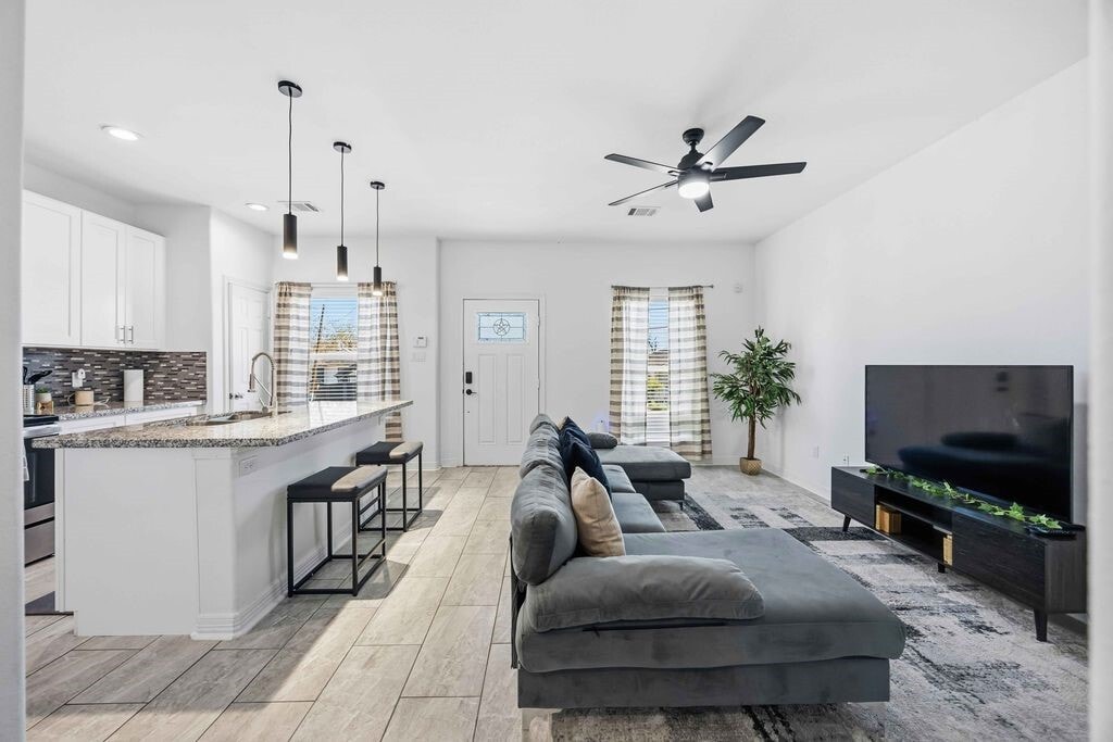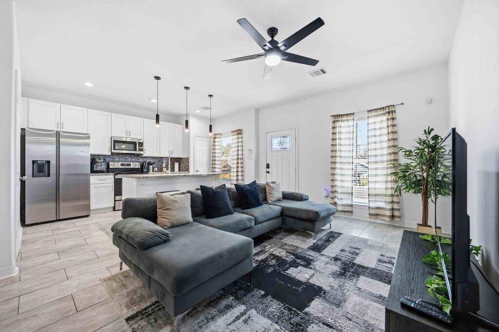 This stunning 3-bedroom,2-bath home featuring a spacious open-concept living area and a beautiful modern kitchen with a space thoughtfully designed. Stainless Appliances,Stackable Washer and Dryer,Tile throughout and Ceiling fans in all bedrooms & living area. Centrally located and just 10 minutes from Downtown Houston,this home offers unbeatable convenience with easy access to dining,shopping,entertainment,and major highways. Interior Furniture is for sale. MLS# 62389347