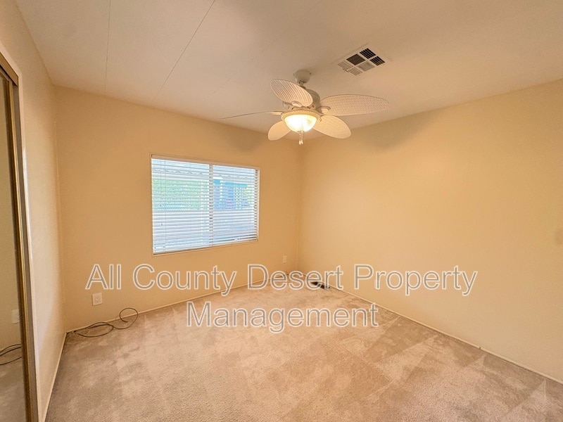 Welcome to 38251 Desert Greens Dr E in Palm Desert, a beautifully situated corner-lot home offering a terrific floor plan and generous living spaces. The oversized family room provides an ideal setting for entertaining, complete with a charming walk-behind wet bar perfect for hosting friends and family. The extra-large primary bedroom is truly impressive, featuring expansive walk-in closets that provide exceptional storage. A spacious service porch adds convenience and versatility, offering a washer and dryer, deep utility sink, built-in desk and office area, and extensive cabinetry for additional storage and workspace. This home is located in a desirable community rich with amenities designed to enhance everyday living. Residents enjoy access to an executive 18-hole golf course, tennis courts, three swimming pools, hot tubs, a fitness center, and a relaxing sauna. The clubhouse offers gathering and activity spaces, while bocce ball courts and indoor shuffleboard provide fun recreation options. Cable TV and trash service are also included through the HOA, adding to the ease and comfort of living in this wonderful neighborhood. Offering comfort, convenience, and a vibrant active-lifestyle setting, this property presents an excellent opportunity in the heart of Palm Desert. All applicants must pass a comprehensive background screening including income verification and landlord references. Renter's insurance is required. All applicants must have the following: monthly income of 2.5 times the monthly rent, a good rental history and an acceptable credit score. HOA fees included in the rent. Tenant to pay all utilities. If you see this home advertised online for less than the rental amount quoted here, the ad is a SCAM. We are the only authorized agent for this property. Please email us a link to any bogus or fraudulent ads so we can report it to the appropriate authorities. Please do NOT send money to anyone who offers keys in exchange for a deposit check - especially if they are out of state. When in doubt, please feel free to contact us.