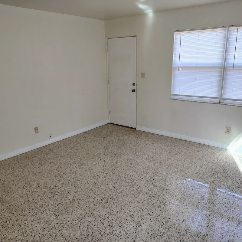 This home offers a practical and comfortable layout starting with an eat-in kitchen finished with ceramic tile, providing both style and easy upkeep. Just off the kitchen, you’ll find an inside utility room for added convenience. The property includes a natural gas water heater and comes with a brand-new high-efficiency central AC system ready to be installed, ensuring energy savings and year-round comfort. The interior features polished mid-century terrazzo floors throughout, combining durability with a clean, timeless look. The floor plan is well designed, with the main bedroom offering double closets for extra storage space. Small pets (2 maximum) may be accepted with background checks approved through: additional fees apply. This home is priced competitively and ready for you to make it your own. All showings scheduled online through or .