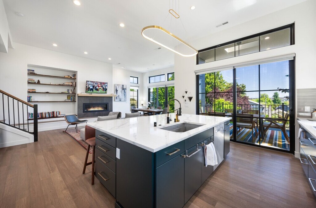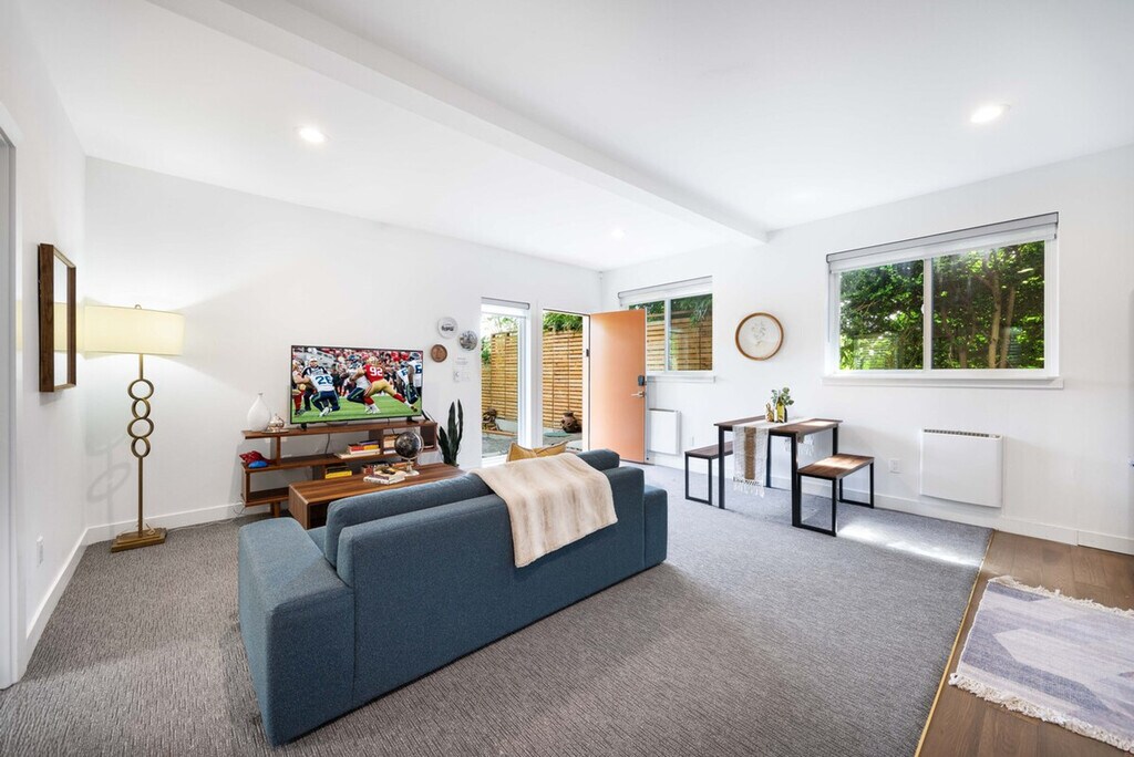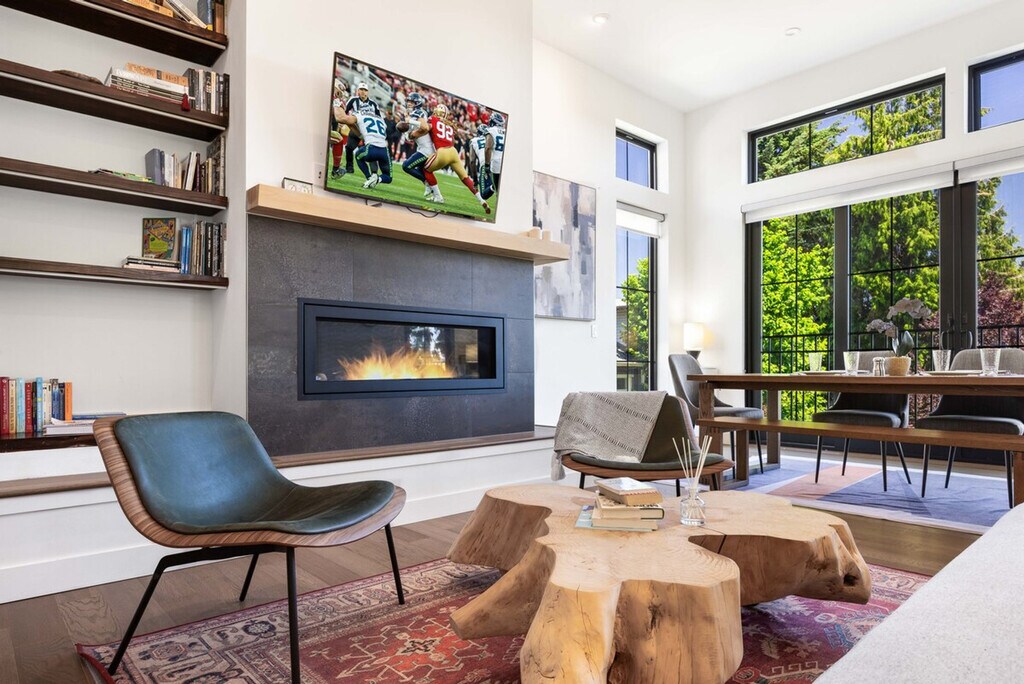 Feel at home in this modern Wallingford home, built in 2020, located in a quiet, safe neighborhood in a prime Seattle location. This home offers 6 bedrooms, 4.5 bathrooms, and 2,620 sq ft. Designed with family-friendly features, this home is ideal for group stays. It features elegant interiors and high-end finishes, two full kitchens, two spacious living areas with Smart TVs and fast Wi-Fi, two sets of washers and dryers, ample storage and closet space, and blackout blinds in every bedroom. The first floor includes a living room with a fireplace, a dining area, a fully equipped kitchen, and an outdoor dining space. The basement floor includes a second living room and a full kitchen. Enjoy the covered, heated patio dining area plus a backyard firepit. The regular nightly rate covers 12 guests. Please indicate an accurate number of guests. Located in the heart of Wallingford, this home is near shops and cafés. Enjoy easy walks to Gas Works Park and South Lake Union, and a short drive to Woodland Park Zoo, the University of Washington, and downtown Seattle. The first floor includes a kids activity area. The second floor includes a laundry area and a kids bedroom with two twin beds. The basement floor includes a second laundry area. This is not a pet friendly home, and there is a $500 fine for unauthorized pets. Strictly no parties and events, quiet hours are between 10pm and 8am, no smoking or vaping of any kind anywhere on the property including outdoor areas, no digital piracy, and no shoes in the home, and there is a $500 fine per violation. Registration Number: STR-OPLI-24-000822 [SI]
