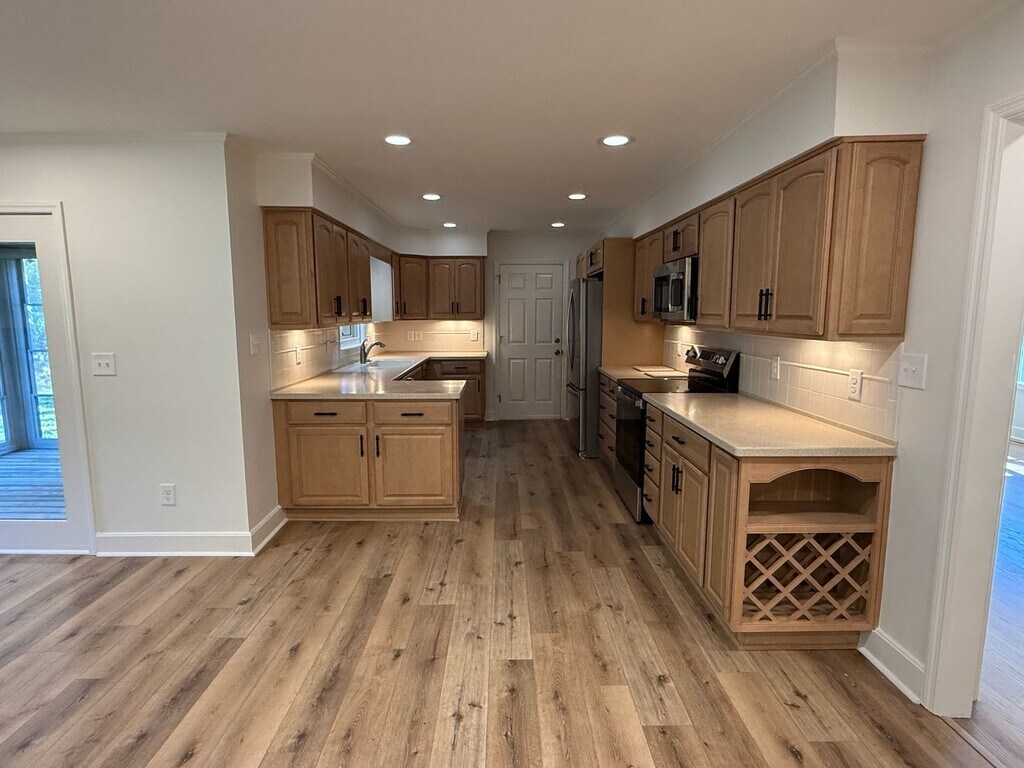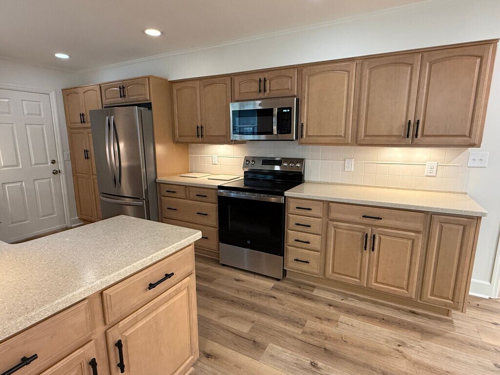 Beautifully renovated 3 bedroom, 3 bath house on Sylvan. Attention has been made to every detail. Separate living room with hardwood floors, large family room with gas fireplace (tenant provides propane tank), LVP flooring and dining area. Stainless steel appliances, beautiful kitchen cabinets and recessed lighting throughout. Under kitchen counter lighting as well as self closing kitchen draws. W/D hooks ups in one car garage that has a finished floor. Two bathrooms are completely new with tile, fixtures and double sink vanity in master bedroom. Walk in showers, retro cast iron tub in one bathroom. Sunroom off of the family room, large fenced back yard and two sheds. Lawn care is included in the rent, tenant pay all other utilities. Ready for move in now. Pets negotiable with owner approval and non-refundable pet fees. Trademark has a $200 admin fee and a $10 monthly processing fee. Application fee is $75 per person.