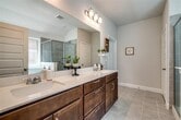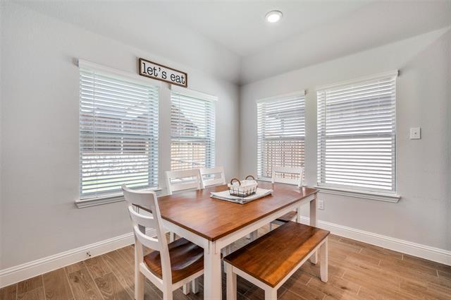 Welcome to 3828 Pearlwood Rd in Little Elm’s sought-after Spiritas Ranch! This stunning 4-bedroom home with a private study and 2.5 baths offers an inviting open-concept layout, perfect for entertaining and everyday living. The spacious dining area flows seamlessly into the kitchen, breakfast nook, and family room, creating a bright and airy atmosphere filled with natural light. The primary suite is thoughtfully tucked away for privacy without being far from the main living areas. Enjoy a spa-inspired bathroom with a soaking tub, a large walk-in shower, and an expansive closet. The chef’s kitchen features granite countertops, gas cooktop, stainless steel built-in appliances, elegant Mist-colored cabinetry, a herringbone backsplash, and a convenient pot and pan drawer. Hard flooring runs throughout the main areas, with carpet only in the bedrooms. Both secondary bathrooms feature spacious 5' showers in lieu of tub, shower combos, while the master bath includes both a shower and a soaking tub. Additional highlights include a covered back porch for outdoor relaxation and a double air filtration system designed to improve indoor air quality and reduce allergens. Located within Denton ISD, this home combines comfort, style, and practicality in one incredible package. Don’t miss your chance to own this beautiful home in a prime location!