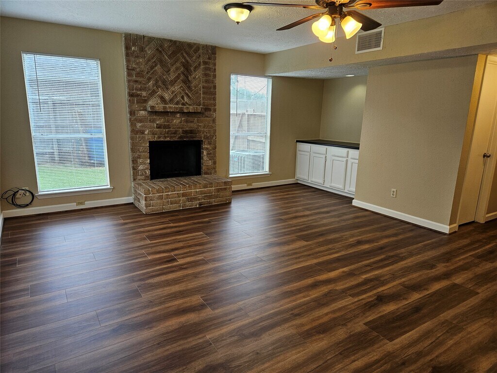 Popular neighborhood with home that features 3 bedrooms with game room upstairs,vaulted ceilings as you walk into the living and dining room,updated vinyl plank flooring throughout the entire downstairs,carpet upstairs in bedrooms and game room,solid wood stair treads,refinished counter tops in kitchen and downstairs half bath,good size rooms throughout,nice garage with workspace,backyard with patio and deck in a convenient location on a low traffic street. MLS# 76896980