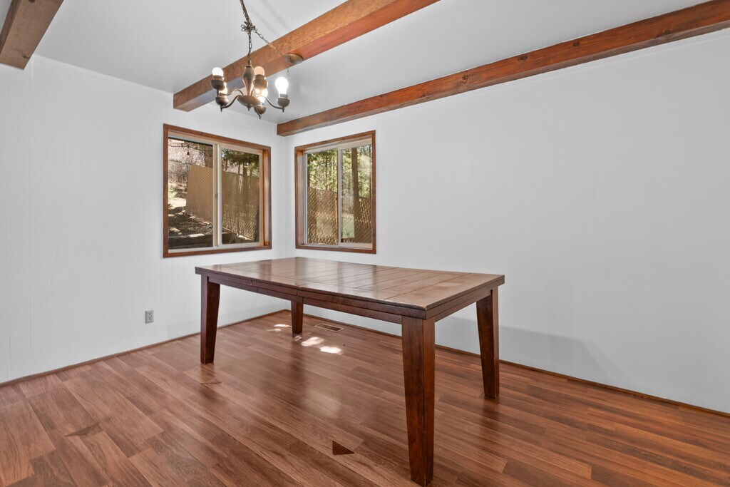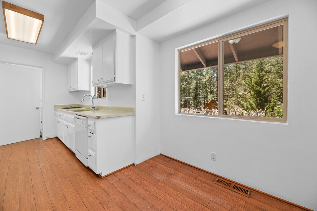 Charming Fox Farm Retreat- 3 Bed, 2 Bath Mountain Getaway. Large and roomy Fox Farm property with lots of sunshine in every room. Previously, it was a long term rental, and it is making its spring debut! 3 large rooms with ample storage and a fresh coat of paint! Nestled among soaring pines on a peaceful street. The galley-style kitchen has all the necessities and charm. Includes dishwasher, fridge, and microwave for your use. The dedicated dining room offers loads of room, open wood beams, and wood floors. Just adjacent is the living room, which is complete with a large native rock fireplace and a ceiling fan, just steps away from the great outdoors. If you're looking for mountain charm with wood trim and paneling, this is the one for you! The fireplace includes a blower to make sure those chilly nights stay at bay. The laundry room is adjacent to the kitchen and is in full working order. One-half bath services the downstairs area. Another full-size bathroom is upstairs. The shower and bathtub are separate and new faucets and sinks await! This home has a 2-car attached garage for your vehicles/toys, and storage needs. Backyard offers a mix of covered patio and sunshine! Large enough to play and bask in the warm weather or sled in the snow if you like! Fox Farm is conveniently located near department stores, ski slopes, and restaurants. Come check out our top-rated schools, public boat launch, parks, and abundant activities. There is something for everyone in Big Bear! This property has been spruced up and awaits new memories! Experience the perfect balance of mountain tranquility and convenient access to all that Big Bear has to offer.