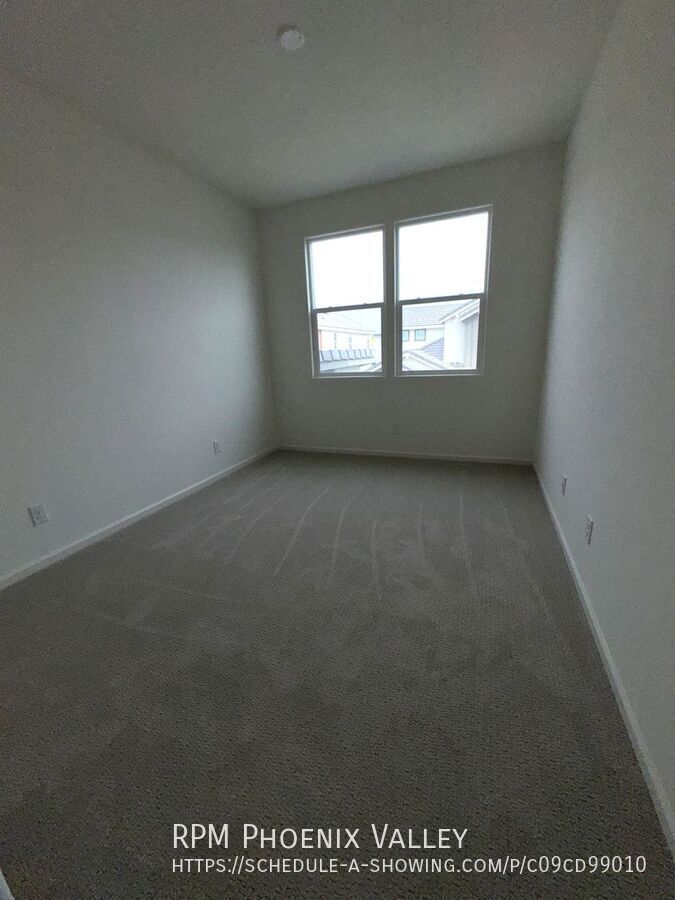 Beautifully upgraded home available for rent. Features include large windows, wood-look plank tile flooring downstairs, large gray waterfall kitchen island with breakfast bar, black sink, modern white kitchen cabinetry and full stainless steel appliance package. A half bathroom also located downstairs. Upgraded high end carpets upstairs in all bedrooms. The primary bedroom comes with a huge bathroom with double vanity, long walk-in shower, upgraded faucets, private toilet room and walk-in closet. Two additional nicely sized bedrooms share a hallway bathroom and the laundry room is also located upstairs with washer/dryer included. Blinds will be installed in the two smaller bedrooms upstairs and all bathrooms before tenant move in. Additional features are custom sliders, modern ceiling fans and there is detached private office or workout room located off the back patio, complete with tile flooring and its own HVAC unit. The backyard is spacious with a view fence and low maintenance artificial grass. Community amenities include walking paths, common areas, a private dog park, pool, children’s park, and barbecue stations. Conveniently located near the Goodyear Recreation Center with a water park, gym, and pickleball courts. Close to shopping, dining, entertainment, and major freeways including the 303 and I-10. Friendly to maximum 2 spayed/neutered pets with a $450 deposit per pet. We do not list on CRAIGSLIST OR FACEBOOK MARKETPLACE SO IF YOU SEE IT ON THERE IT IS A SCAM $50.00 non-refundable application fee per person, age 18 or over. Full security deposit of $2,095 is due upon approval. Move in date must be between 7 & 30 days from lease signing/payment of security deposit. If moving in on or after the 5th then pro-rated current month rent is due as well as the following full month. All rent is due 7 days prior to move in. 2 Car Garage Community Pool Fridge Range/Stove Sprinklers Washer/Dryer
