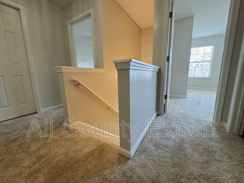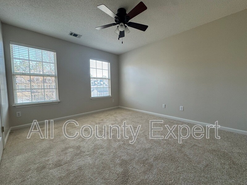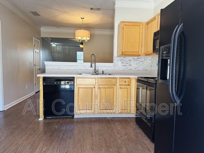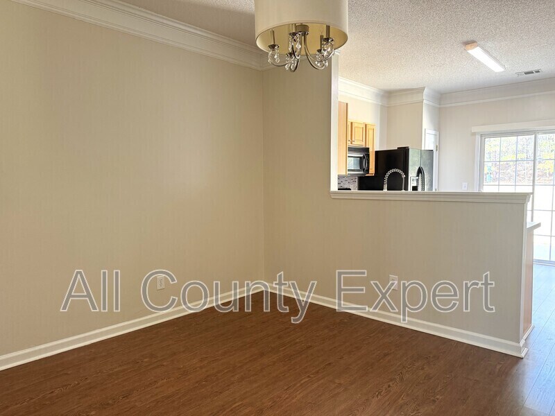 Welcome to this bright and inviting end-unit townhome featuring an open layout and fresh updates throughout. The main level offers a covered entry, a cozy family room with a gas fireplace, formal dining space and a master suite on the main with a garden tub, separate shower, double vanity, and a spacious walk-in closet. The kitchen features an open-air design with maple wood cabinetry and views to the dining room. The main level is enhanced by newer LVP flooring, while the upper level boasts brand new carpet and fresh paint throughout the entire home. Upstairs you’ll find two generous secondary bedrooms with a shared full bath. The laundry is conveniently located off the hallway, and the washer and dryer remain. The home backs up to a large open green space. Community amenities include a pool, cabana, walking trail, and lake for you to enjoy. This move-in ready home is a must see!