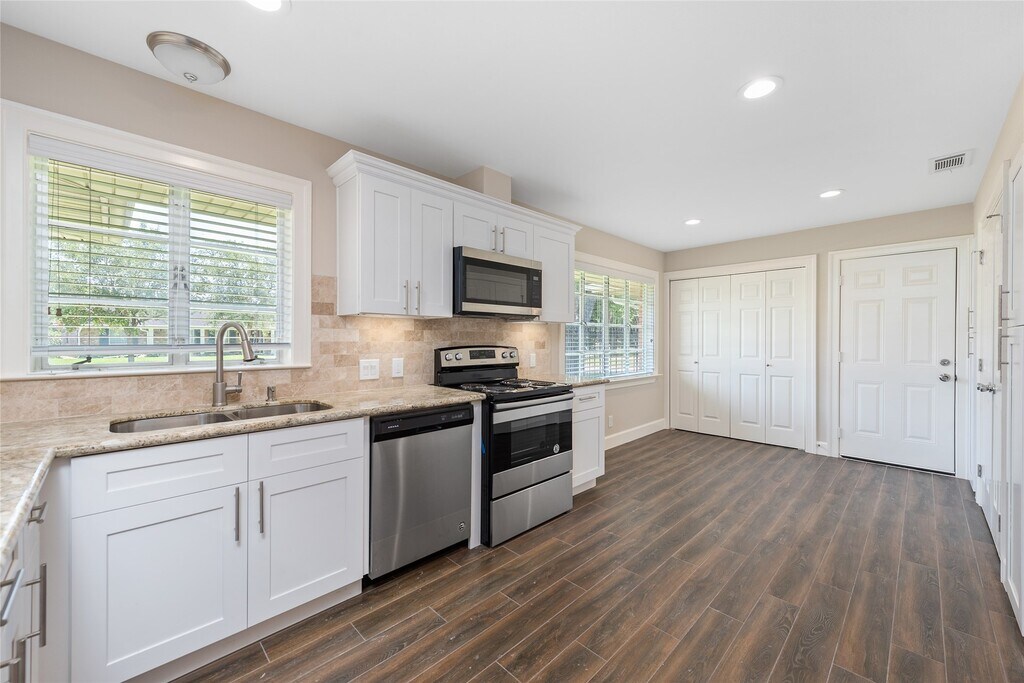 LIKE NEW! This COZY,one-story Home has been COMPLETELY RENOVATED! Two-tone accent colors! UPGRADED “wood look” porcelain tile through-out! UPGRADED soft-close kitchen cabinets w/ undermount cabinet lighting! STAINLESS-STEEL KITCHEN APPLIANCES! Recessed Lighting! UPGRADED Bathrooms w/ soft-close cabinets! UPGRADED Master Suite complete with His-&-Her closets,granite counter-top & Marble Garden Tub! Ceiling Fan in each Bedroom! HUGE yard & patio! GATED DRIVEWAY! Walking distance to Neighborhood Park! EASY ACCESS to US-90 & I-610 make for an EASIER COMMUTE! Located JUST MINUTES from the Medical Center,Downtown,Galleria,Rice University,University of Houston,& Baylor College of Medicine! Zoned to GOOD SCHOOLS! Roommates welcome! MOVE-IN READY! MLS# 66462536