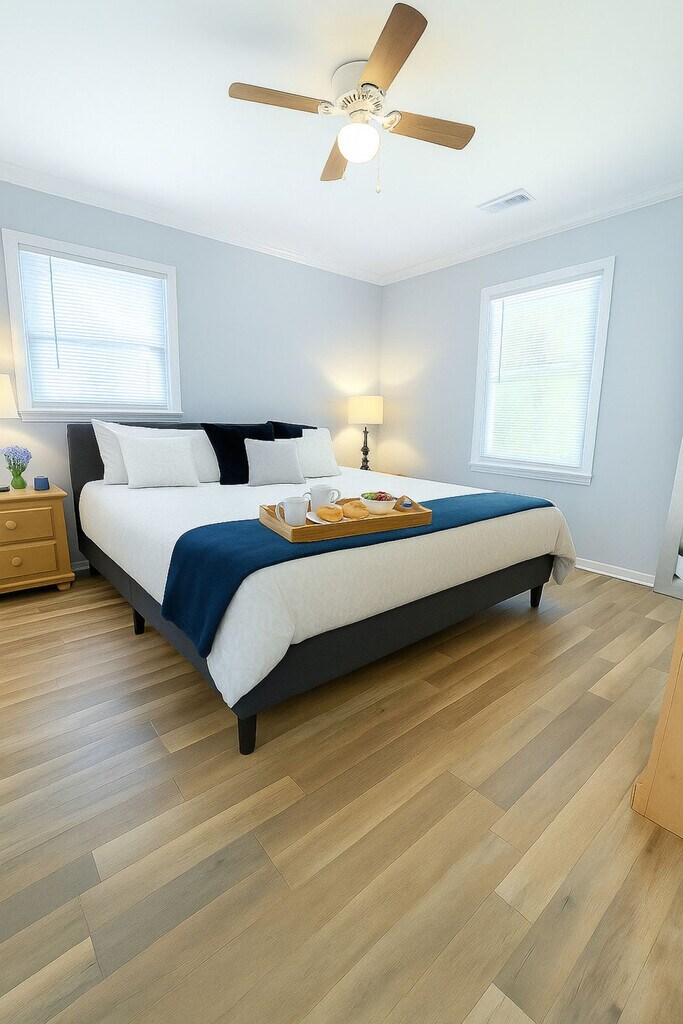 Enjoy a stylish experience at this centrally located, newly rehabbed private home in a quiet, family-friendly neighborhood. Situated close to popular South End pubs and restaurants, it's just 10 minutes from CLT Airport, Uptown Charlotte, and many other local attractions. Perfect for couples, business travelers, and families, this gem offers a warm welcome. The home features a fully equipped kitchen with stainless steel appliances, cooking basics, a drip coffee maker, and a toaster. The kitchen table seats six comfortably. The living room includes a comfy queen-size sofa bed and a big screen TV for movie nights. Central heat and AC ensure comfort throughout your stay. Free parking is available in the driveway for up to four vehicles, with additional overnight street parking. If traveling with a pet, an additional $300 per pet per stay fee applies. Travelers love this property due to its prime location. Minutes away from premier shopping, restaurants, museums, family entertainment, nightlife, live entertainment, golf courses, outdoor recreation, movie theaters, and CLT airport. Plenty of Ubers are available to take you anywhere, or you can bring your own vehicle and park in the driveway. Smoking or vaping of any kind in the house or garage will result in a $500 fine for deep cleaning. Smoking is allowed outside in the backyard only. Quiet hours are from 9 PM to 8 AM to respect the neighbors, and complaints may result in immediate cancellation of your stay without refund. For security, this property has a Ring camera monitoring the front, driveway, and backyard, all visible and recording video and audio during every reservation. High-speed internet and Wi-Fi are available, along with Roku TVs to log into your favorite streaming services, making it easy to work from home or enjoy entertainment. [SI]