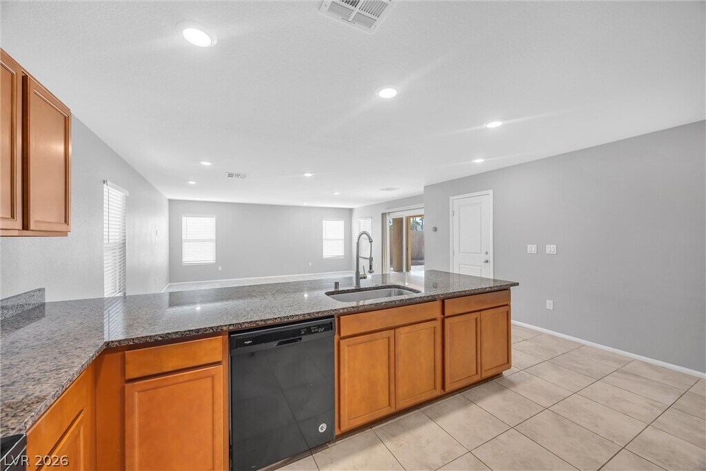 Discover the perfect blend of contemporary style and comfortable living in this spacious residence. The open-floor plan creates a seamless flow between the living areas, allowing for effortless entertaining. The kitchen features a large breakfast counter for casual dining and stunning salt-and-pepper granite countertops. The cool-toned tiles and paint create a serene and inviting atmosphere throughout the home. For added convenience, each bedroom is equipped with ceiling fans featuring stylish lights. A separate laundry room provides ample space for household chores. Step outside to your private oasis, where an extended patio with charming pavers and a covered area offer the ideal setting for relaxation and outdoor gatherings. This exceptional home is a true sanctuary, combining modern elegance with timeless appeal.