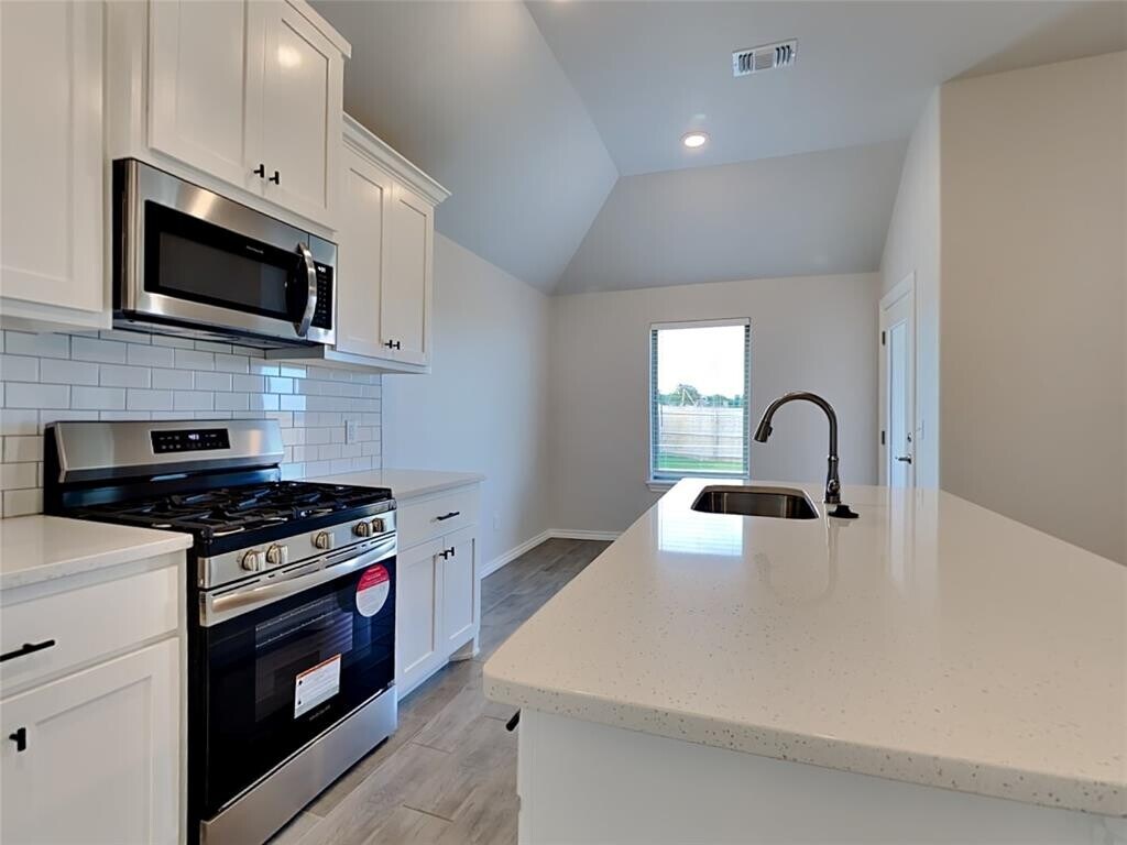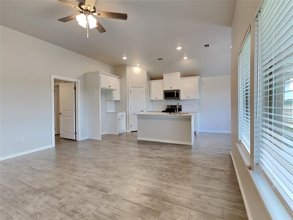 Your exploration of seamless luxury living starts here with this thoughtfully designed home. Built using the exquisite Bogan floor plan,this charming abode offers 1,510 Sqft of total living space,which includes a spacious 1,400 Sqft of indoor living space and an additional 110 Sqft allocated for outdoor relaxation. The attached 395 Sqft two-car garage also shelters a storm installation for added safety. The home greets you with 3 bedrooms,2 comfortable bathrooms,2 covered patios perfect for entertaining,a utility room,and a functional office space. The living room welcomes you with large windows illuminating the wood-look tile,an efficient ceiling fan,and Cat6 wiring for compatible modern living. The chicly designed kitchen is adorned with 3 CM quartz countertops,stainless-steel appliances,wood-look tile,custom-built cabinets with decorative hardware,stylishly accentuated with a tile backsplash. The primary suite is a tranquil haven offering comfortable carpet flooring,a ceiling fan,Cat6 wiring,and perfectly sized windows that allow for natural light. The primary bath is a private oasis featuring a dual sink vanity with an elegant countertop selection,a walk-in shower,an elongated water-saving toilet,and a huge walk-in closet to comfortably store all your essentials. The outdoor living area is covered for all-weather use.