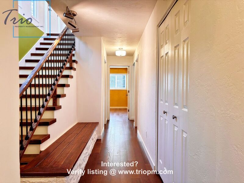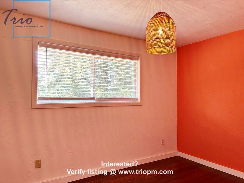 Welcome to this beautiful, spacious mid-century modern home, with 2 living rooms, 4 bedrooms, and 2.5 bathrooms, nestled in the hills overlooking Amazon Parkway. It is located in the 4J school district, just two blocks from Charlemagne Elementary. This light, spacious property offers a fashionably updated open-plan kitchen, dining room, and living room, with large windows to the deck, perfect for cooking and entertaining. The large master bedroom has its own en-suite bathroom. New modifications to the home include thick oak stairs and bannisters, new blinds in all bedrooms, new paint, and new white baseboards and millwork throughout. New ductless heat-pumps on both floors ensure efficient heating and cooling all year, with two working fireplaces for ambiance. Step outside to a covered deck, and enjoy the fresh air in this friendly, pretty hillside neighborhood. Don't miss out on this SE Eugene gem! VIEWING INSTRUCTIONS: Go to to verify the listing and schedule a showing at your convenience! Or call EXT 1 SMOKING: No smoking entire premises PETS: YES! See pet criteria. UTILITIES: Tenant responsible for all utilities and garbage service GARAGE/PARKING: 2 car garage Property does not come with garage door remotes. GUARANTOR/CO-SIGNER: Not accepted LAUNDRY: Hook ups YARD CARE: Tenant to maintain landscaping HOMEOWNER’S ASSOCIATION (HOA): No TERM: 1-year Lease SCREENING CRITERIA: Answers to your screening fee and application questions are found on the website at . No more wasting time waiting for a phone call back. Click the link to our website to review the screening criteria and apply online. Screening criteria is at the beginning of the application. HOW TO APPLY: 1. View the property interior and exterior via self-showing options above 2. Apply online Search our Rentals, Apply Now 3. Pay non-refundable screening fee online Trio Property Management Inc. 1000 Willagillespie Road Ste 206 Eugene, OR 97401 NO EMAIL INQUIRIES All information is deemed reliable but not guaranteed and is subject to change. Applicant to verify all information. Eugene properties impacted by the Eugene ordinances: Applications will be accepted upon posting of this listing until the property is rented. If you are an applicant with limited English proficiency, you are entitled to submit a request for an additional 24 hours to provide you with more time to seek language assistance services for the purpose of complying with the Housing Provider’s screening and application requirements. Amenities: Updated kitchen, Lovely neighborhood, Covered deck, Spacious kitchen, Master bedroom suite, Fresh paint, Ductless heat-pump