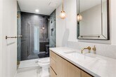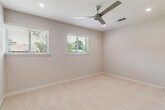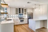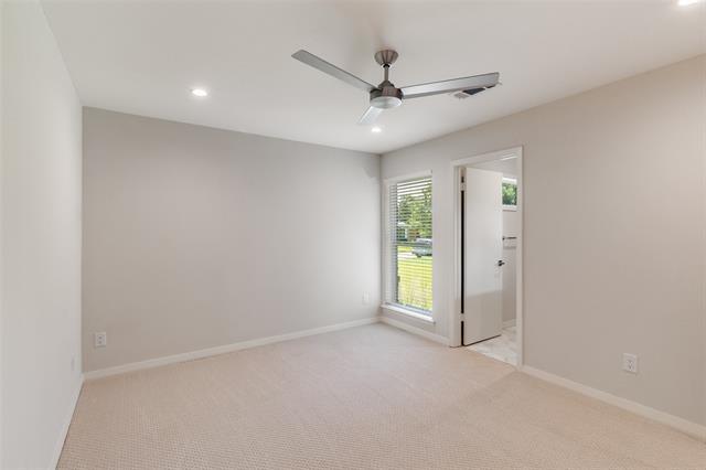 Stunning mid-century modern 4BR-3BA home for lease on a beautifully landscaped corner lot. This fully renovated 2,127 sqft residence blends iconic design with luxurious modern updates. The open-concept living, dining, and kitchen areas feature LVT flooring, a terrazzo tile entry, pitched ceilings, a wood-burning FP with gas starter, and a sleek dry bar - perfect for entertaining in style. The show-stopping kitchen showcases high-end stainless steel appliances: Bertazzoni Italia gas range, Samsung vent hood, Frigidaire Gallery French Door refrigerator, KitchenAid dishwasher and a built-in Cosmo drawer microwave. Thoughtful finishes include quartz countertops, a designer-colorful backsplash, soft-close custom cabinetry, open shelving, glass inserts, and a single-basin sink with pull-down faucet - all contributing to a clean, modern aesthetic. The spacious primary suite is located at the rear and boasts a luxurious ensuite bath with dual sinks, a large walk-in shower with glass enclosure and skylight, marble flooring and counters, floating vanity, and wall-to-wall mirror. The walk-in closet features a custom organization system. Two additional bedrooms each have stunning ensuite baths with marble and quartz finishes, designer tile, sleek lighting, separate shower or tub shower configurations and high-end fixtures - showcasing form and function in every detail. A dedicated study adds flexibility for remote work or creative pursuits. Step outside to a large fenced backyard with a patio—ideal for relaxing or entertaining. The automated sprinkler system easily maintains a recently installed lawn and modern landscape in all yard areas. An oversized 2-car attached garage provides ample storage. Lease will include lawn mowing, refrigerator, and washer & dryer. Convenient access to I-635, I-35E, and Marsh Lane makes for easy commuting, in addition to the nearby shops & restaurants at the Dallas Galleria. A true modern gem - where timeless architecture meets today’s lifestyle.