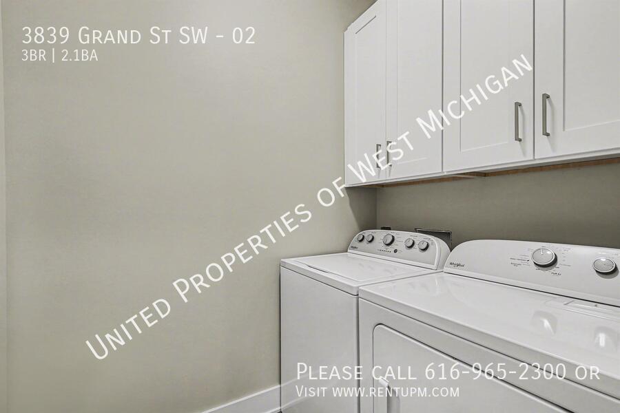 Welcome to 3839 Grand #2! This beautiful new-construction, side-by-side duplex in Grandville offers modern living with a clean, bright design and thoughtful layout. The main floor features an open-concept kitchen with stainless steel appliances, a center island, and a walk-in pantry, along with a convenient half bath and main-floor laundry. Upstairs, you’ll find three spacious bedrooms, including a primary suite with a private en-suite bathroom and large walk-in closet, plus an additional full bath. The unfinished basement provides plenty of storage and adds to the home’s light and airy feel. With contemporary finishes throughout and a functional, modern layout, this home offers comfort, style, and convenience in a desirable Grandville location. United Properties | | Schedule a showing: View application criteria: Submit an application: View pet policy: Once approved, you can secure your new home with a holding fee equal to one month’s rent, which reserves the property and is applied toward your security deposit. Based on a few items, the total deposit may be one month or one and a half times the rent; if higher, the remaining balance is due before move-in. United Properties of West Michigan has been helping residents find great homes since 2006 and is proud to be West Michigan’s largest property management company with a 4-star-plus Google rating. All residents enjoy the United Properties Resident Benefit Package, which includes: - Monthly credit reporting to the major credit bureaus - Rewards for on-time rent payments - Ongoing pest control protection This added value is $25/month, in addition to the listed rent. Learn more: We’re excited to help you find your next home and make your move-in experience as smooth as possible. Welcome home with United Properties of West Michigan! No Blinds Porch Front Covered Porch Rear Covered Tenant Pays Gas Water Heater Electric