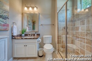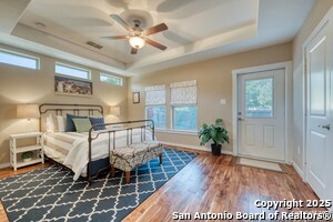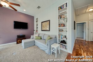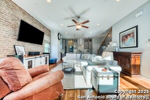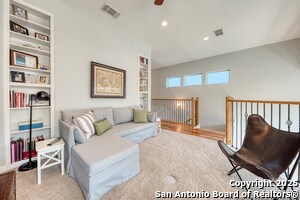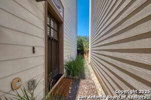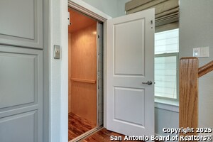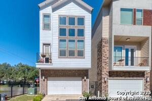 Experience refined living in this stunning contemporary home nestled within an exclusive gated community. Featuring 3 bedrooms, 3 full baths Tree-like home with private elevator near Alamo Heights. This residence blends elegance and functionality with an open-concept design, rich hardwood floors, and abundant natural light. A private guest suite on the first floor offers an en-suite bath, walk-in closet, and patio access-ideal for guests or multi-generational living. The main level showcases a gourmet kitchen with granite island, gas cooking, wine cooler, and balcony for relaxing under the Texas sky. Upstairs, enjoy a versatile loft space perfect for a home office or gym and a luxurious primary suite with spa-style bath, dual vanity, and travertine finishes. Corner unit with 2-car garage, premium privacy, and quick access to Ft. Sam Houston, 410, 281, and the Alamo Heights lifestyle. Rare opportunity for elevated leasing. Request your private tour today!