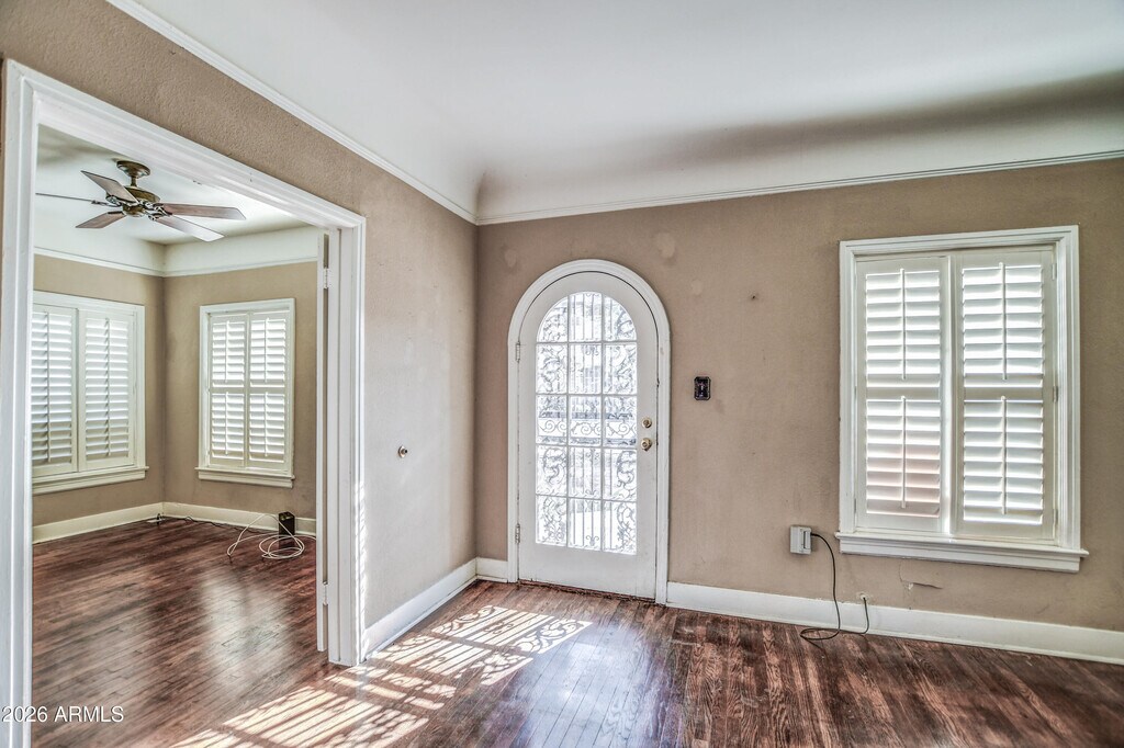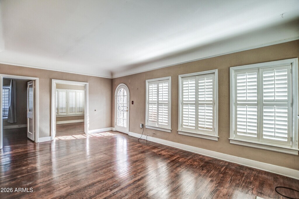 Welcome to this beautiful & charming home in the heart of Central Phoenix. Minutes away from Encanto Park,downtown and major freeways. This home offers a bright,functional layout with spacious living areas,ample natural light and timeless character. Beautiful wood flooring throughout,charming architectural elements,updated bathroom,bonus room in primary bedroom. Formal dining room. Washer/dryer included. Private backyard with mature trees