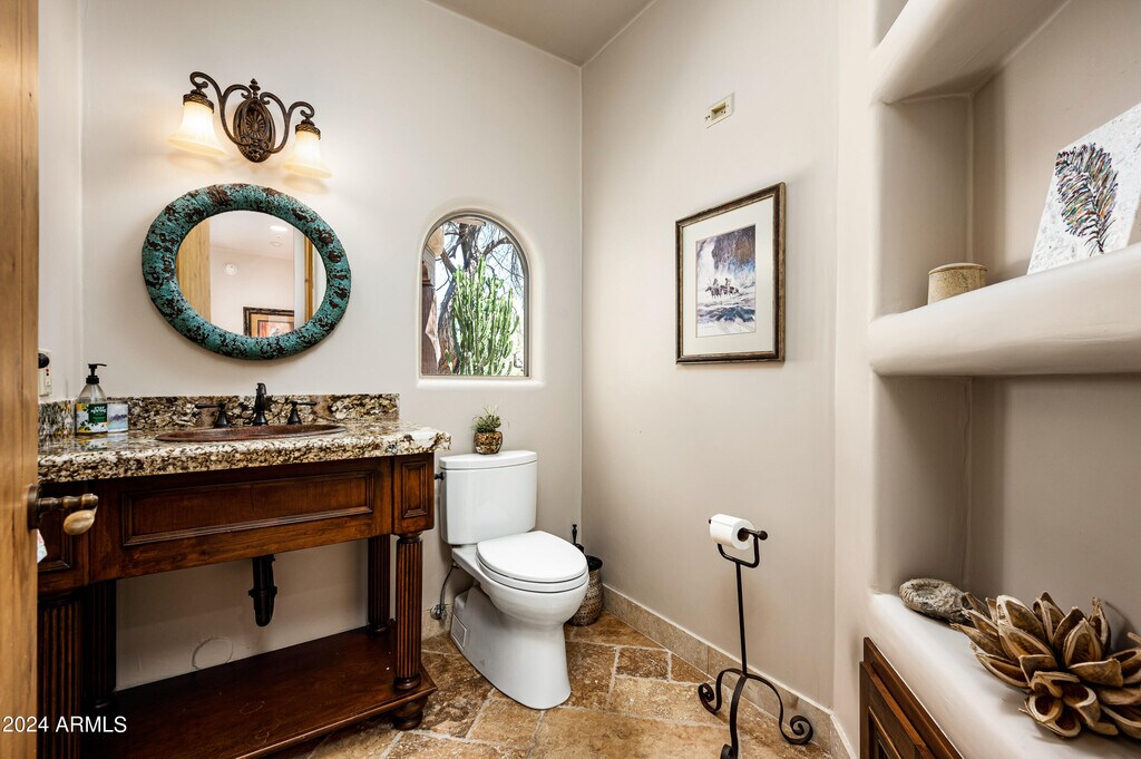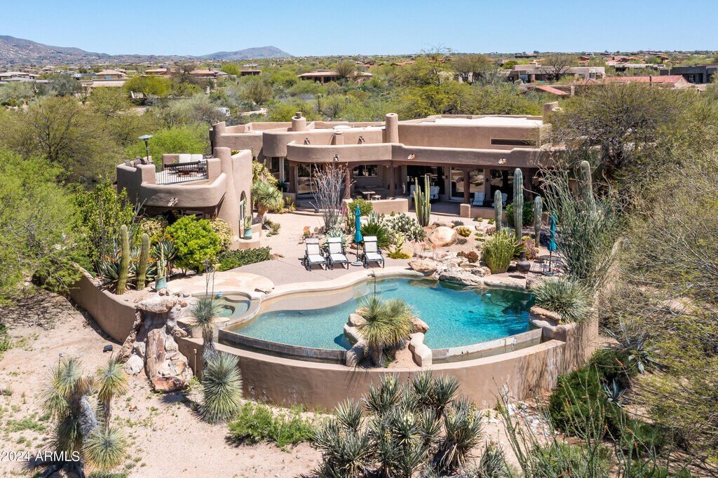 Rustic Southwest style home located behind the 3rd hole of the Renegade Golf course in desert mountain. 4 Beds,4.5 bath + office. Three beds and office in main house and a separate guest casita with a upper deck to see the the city lights and down valley views. Beds: 2 Kings size beds,1 queen and 2 twins with a sleeper sofa in the office. Some furniture has been changed out . New photos will be coming soon