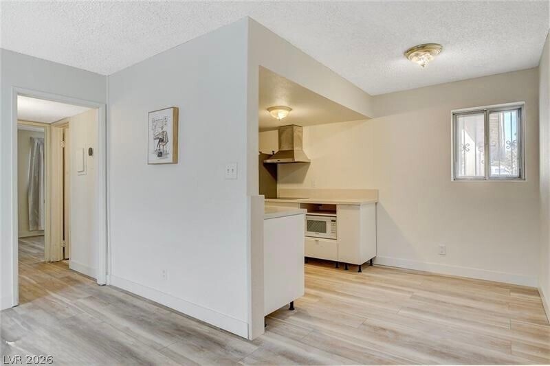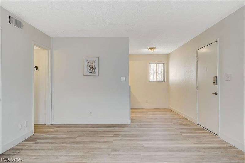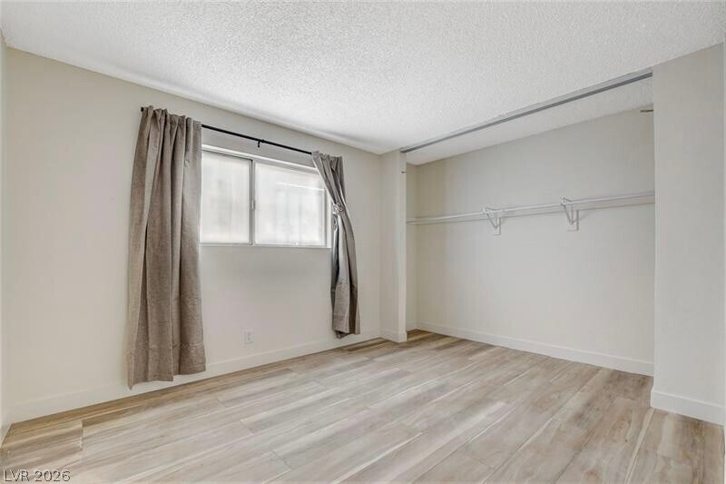 Completely Updated and Move-In Ready, 2 bedroom, 1 bath first floor unit! Open Spacious Floor Plan! New Grey Luxury Vinyl Plank Flooring Throughout; Living Room with built in shelf and two storage closets. Kitchen has Quartz Countertops, Custom White Cabinets with Stainless Steel Range Hood, Sink, Refrigerator & White Microwave, luxury vinly plank floors and Dining Area; Dishwasher removed to add Washing machine. Remodeled Bath Offers $10k in Upgrades Including Marble Subway Tile and floor to ceiling Mosaic tile; Oversized Bedrooms with new lighting & closets; Property has wrought iron security door to entrance to Breezeway with storage closet and additional Wrought Iron Security Door to property as well as security bars on all windows. Community features two coin operated Laundry Facilities and Sparkling Community Pool. Easy Access to UNLV, Dining, Shopping, Sports and Entertainment. HOA Covers Exterior of Building, Including the Roof, Water, Trash & Sewer. Tenant just pays Power.