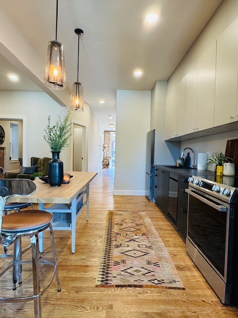 Completely renovated from top to bottom, this main level unit in Tower Grove South blends historic charm with modern updates. Everything is new including plumbing, electric, insulation, drywall, windows, and roof, so all that's left to do is move in and enjoy. Inside, refinished oak hardwood floors run throughout the open floor plan connecting the kitchen and living area. The kitchen features clean-lined cabinetry, modern fixtures, and stainless steel appliances that balance function and style. There are two bedrooms and one bathroom. The second bedroom with the original pocket door that could serve as a guest room, dining space, or home office if one doesn't have a need for a full time 2nd bedroom. Additional highlights include in-unit laundry with a dedicated closet, a private 10x16 deck, and thoughtful finishes throughout.